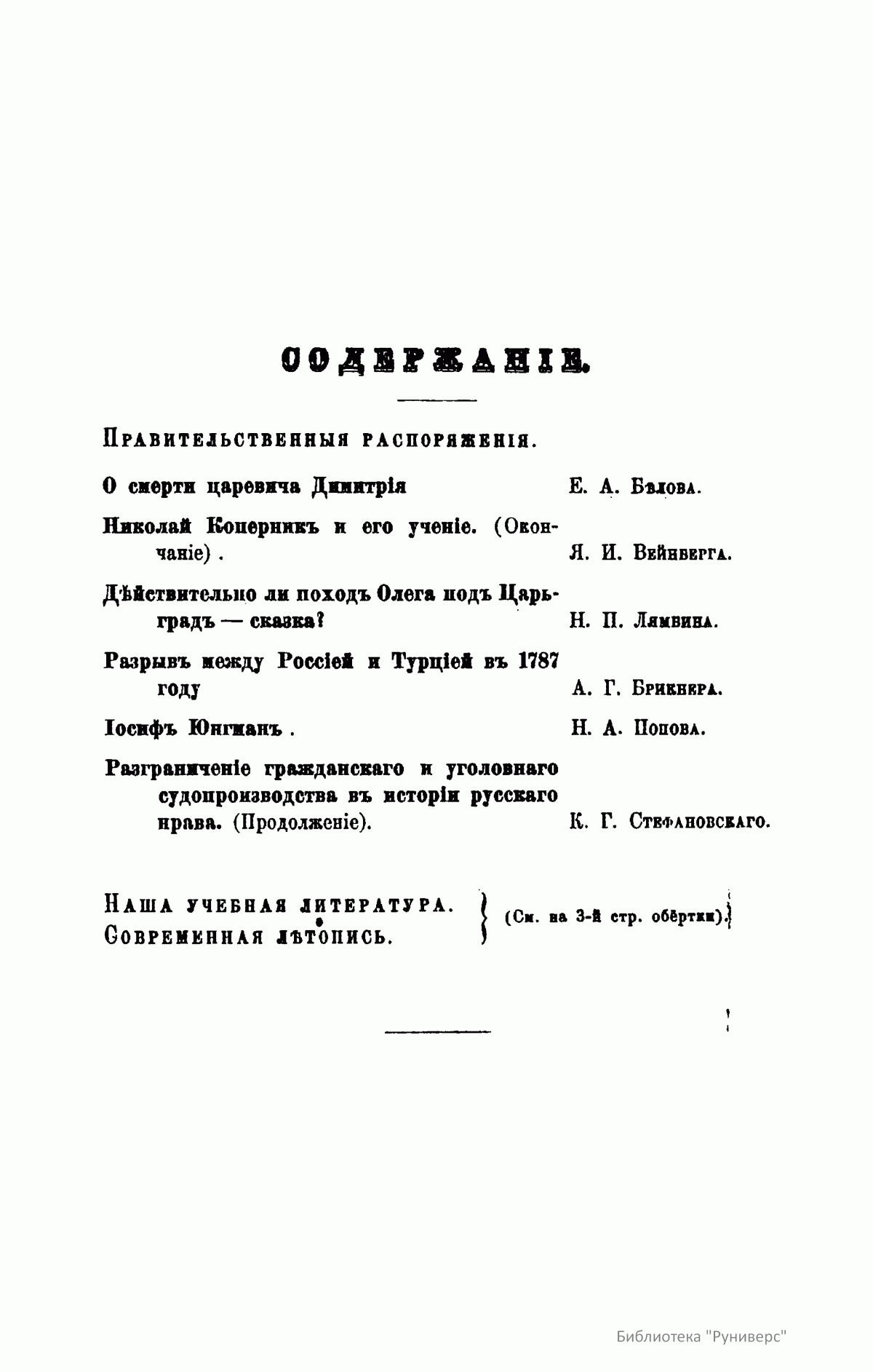 С 1864 года стали выходить указатели к повременным изданиям Министерства народного просвещения начиная с 1803 года.