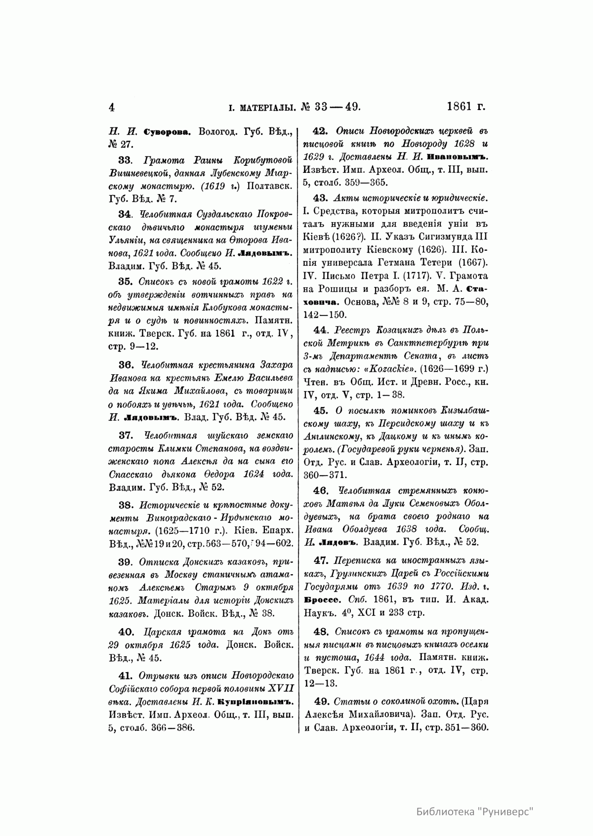 Русская историческая библиографiя. Годъ седьмой. 1861