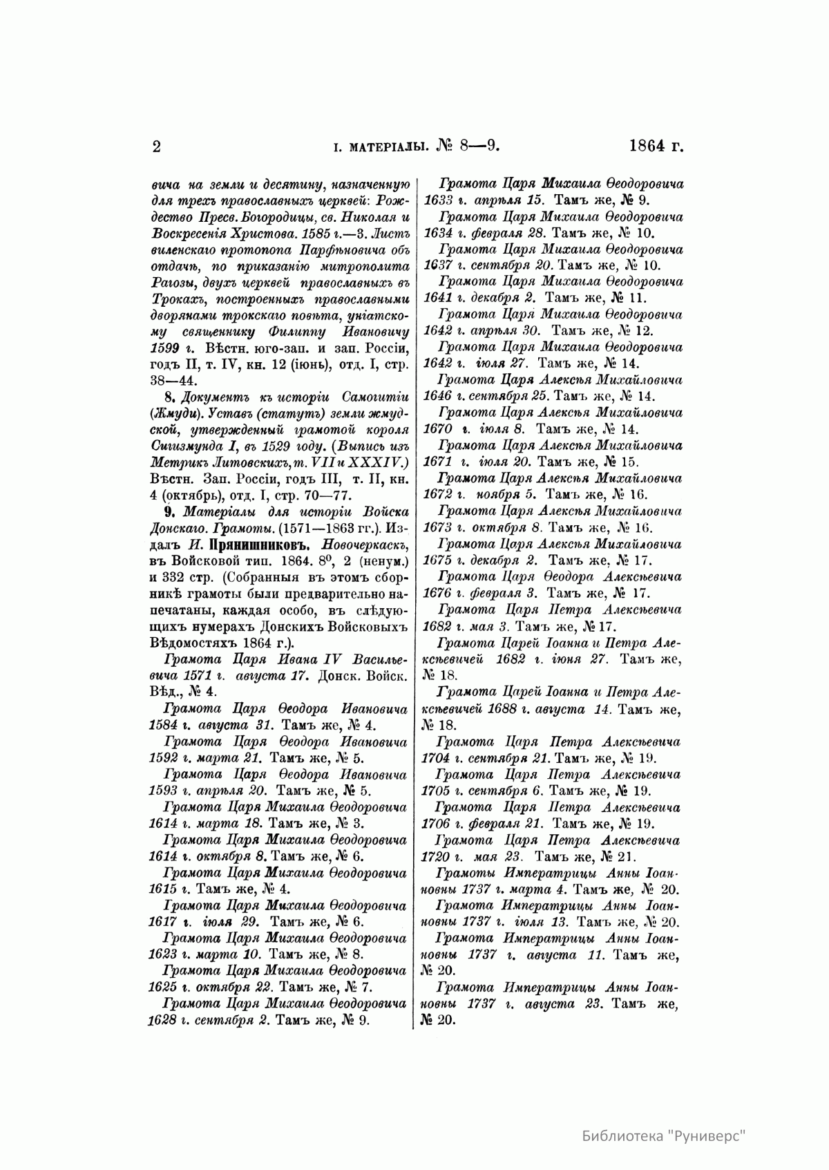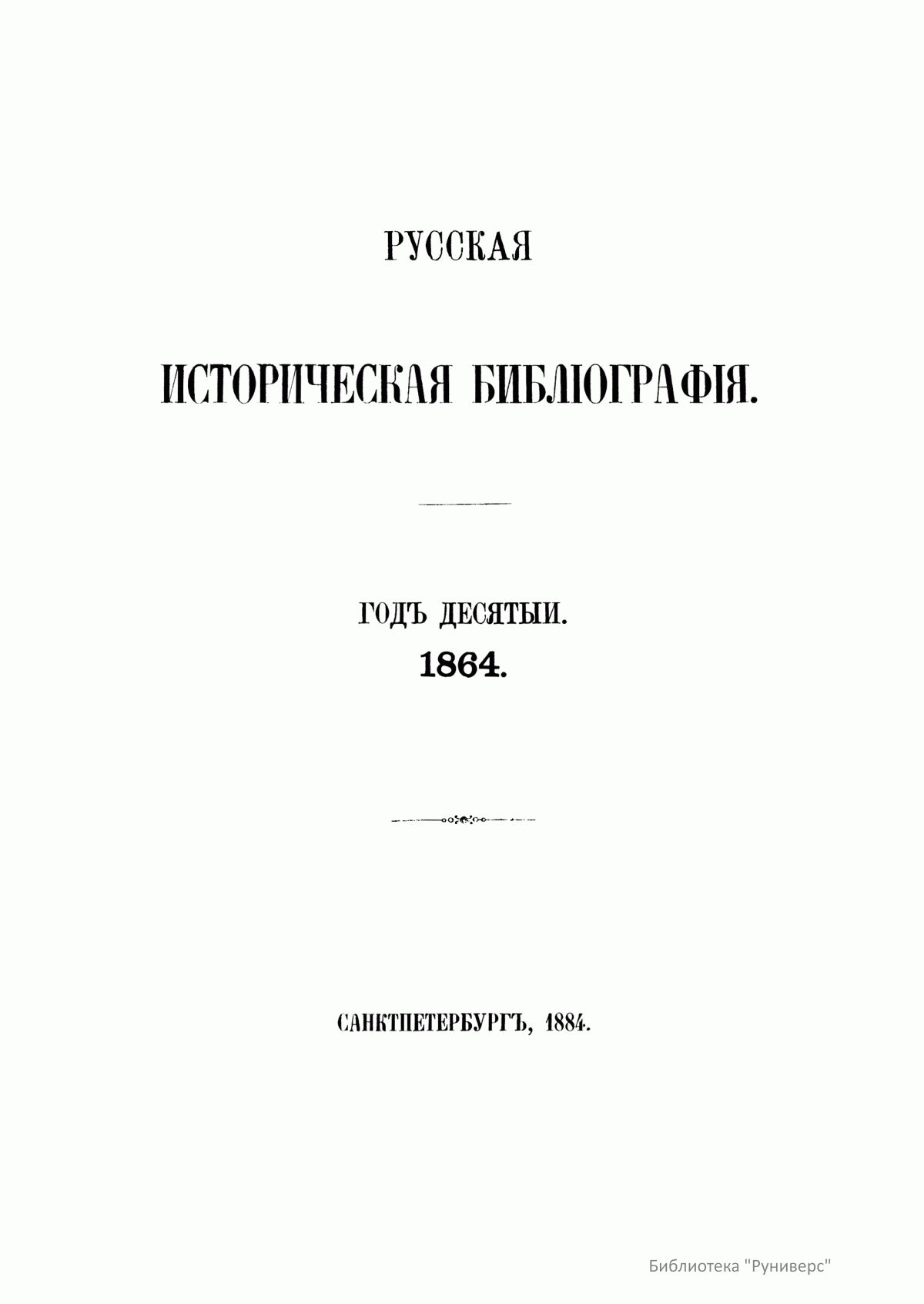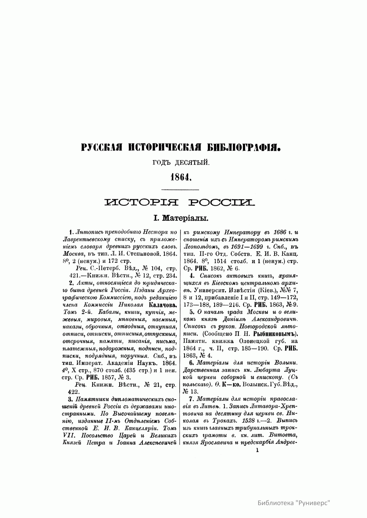 Русская историческая библиографiя. Годъ десятый. 1864