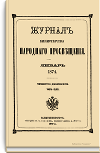 Журнал Министерства народного просвещения выходил с 1834-го по 1917 год. Официальный периодический журнал об успехах просвещения в России. Издатели журнала уверены в том, что «если для каждого человека необходим выход из грубой тьмы невежества и беспрерывное дальнейшее движение к свету, то для народов необходимо попечительное участие правительства в образовании. Только правительство имеет все средства знать и высоту успехов всемирного образования, и настоящие нужды Отечества».