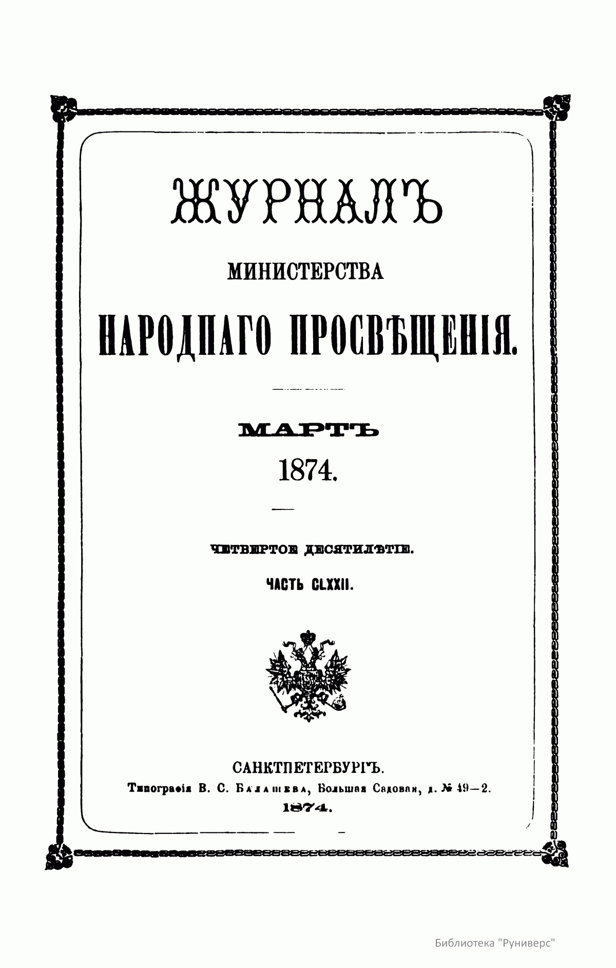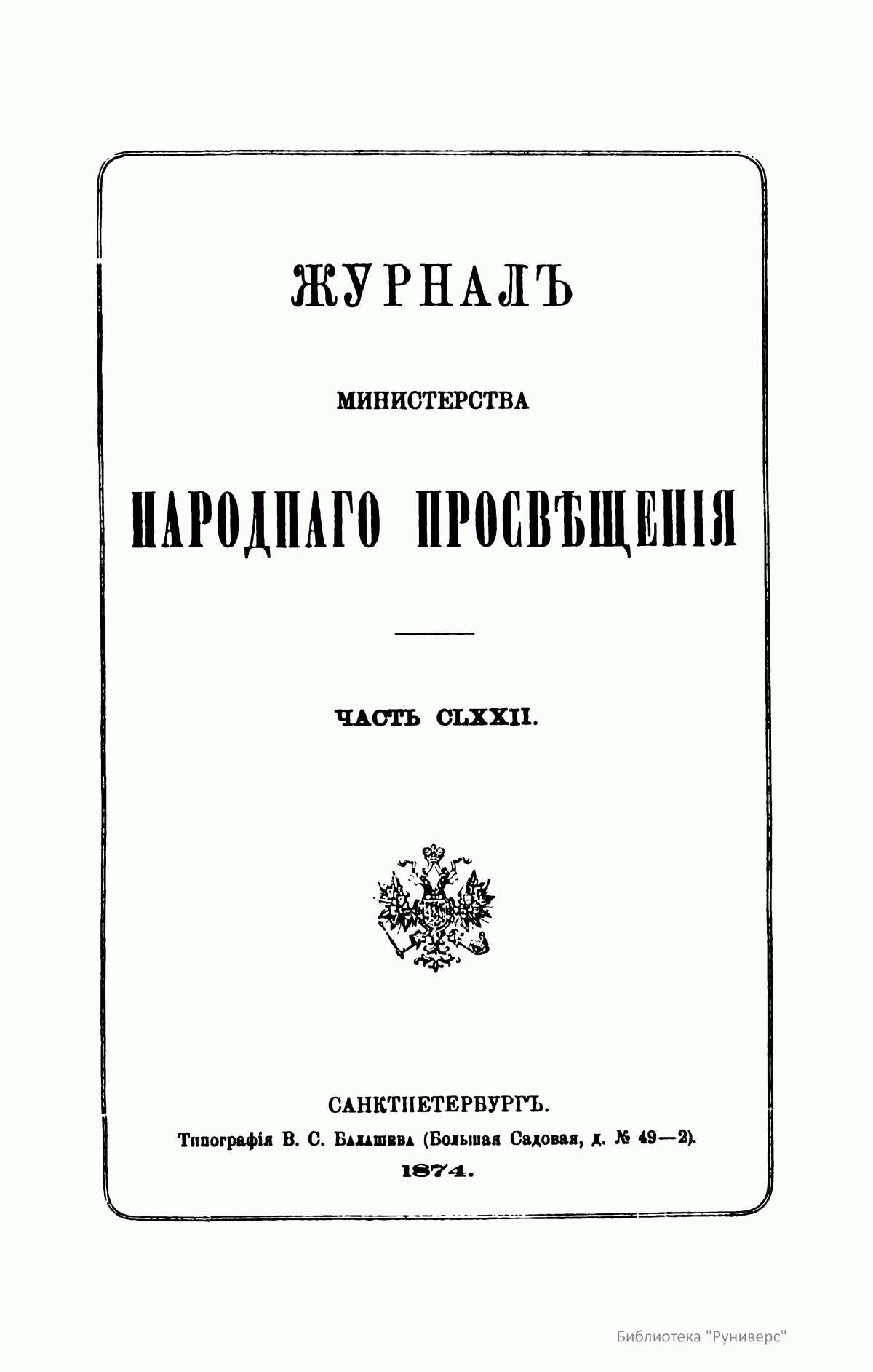 Журнал Министерства народного просвещения. Часть CLXXII
