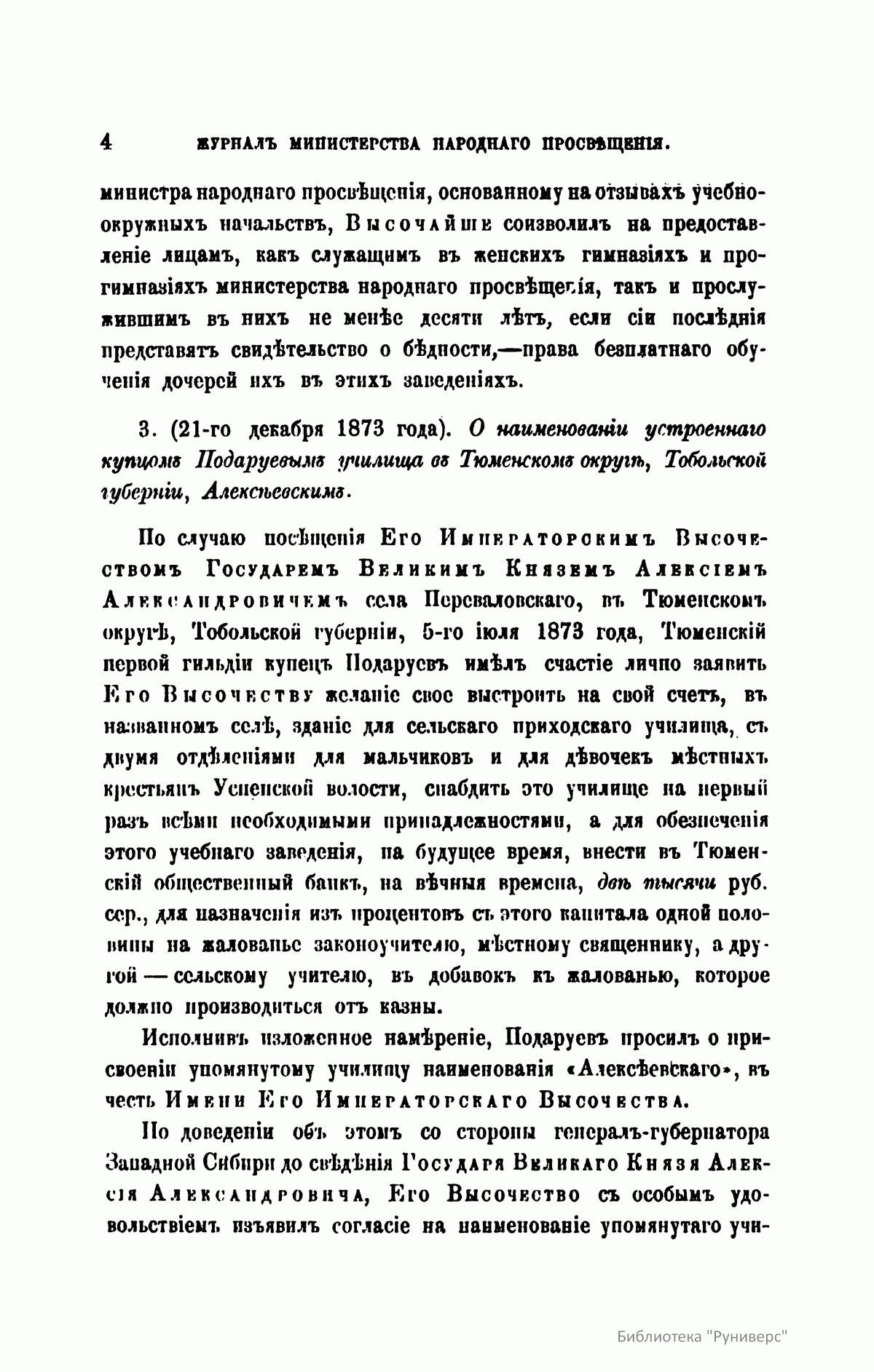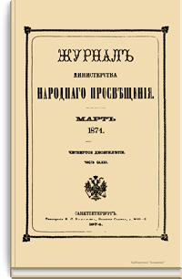 Журнал Министерства народного просвещения выходил с 1834-го по 1917 год. Официальный периодический журнал об успехах просвещения в России. Издатели журнала уверены в том, что «если для каждого человека необходим выход из грубой тьмы невежества и беспрерывное дальнейшее движение к свету, то для народов необходимо попечительное участие правительства в образовании. Только правительство имеет все средства знать и высоту успехов всемирного образования, и настоящие нужды Отечества».