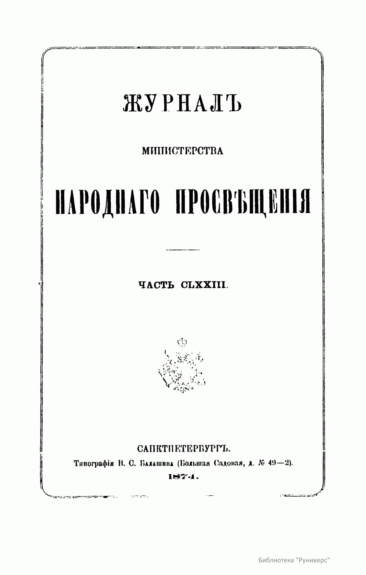 Журнал Министерства народного просвещения. Часть CLXXIII
