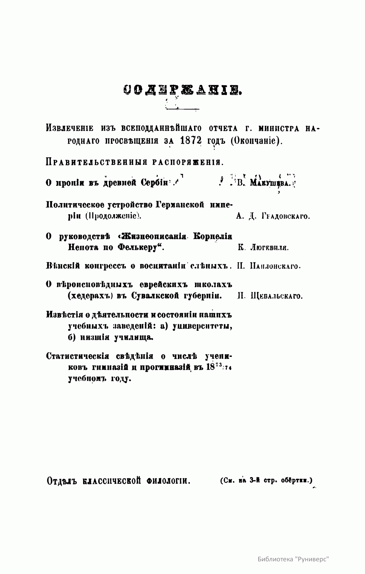 С 1864 года стали выходить указатели к повременным изданиям Министерства народного просвещения начиная с 1803 года.