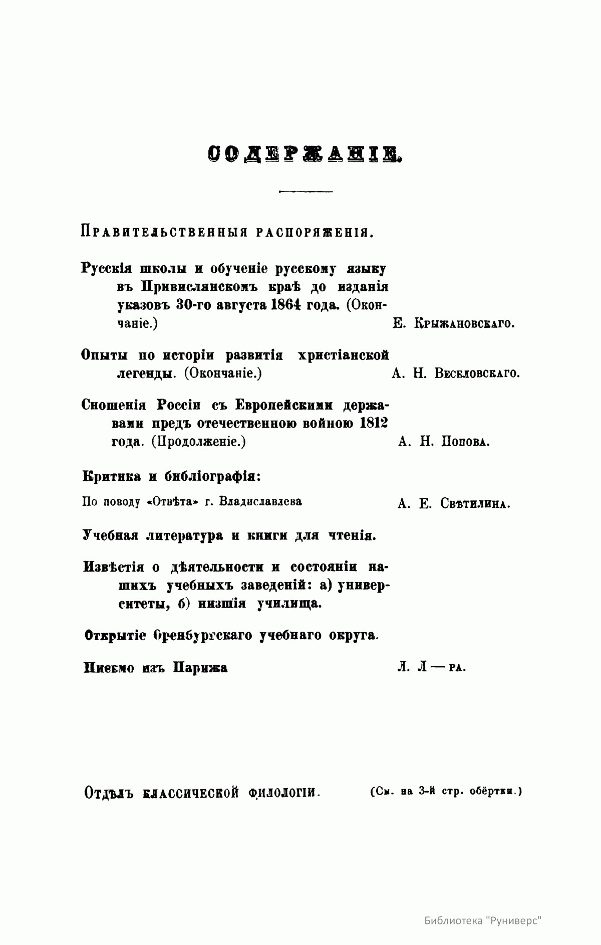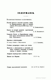 С 1864 года стали выходить указатели к повременным изданиям Министерства народного просвещения начиная с 1803 года.