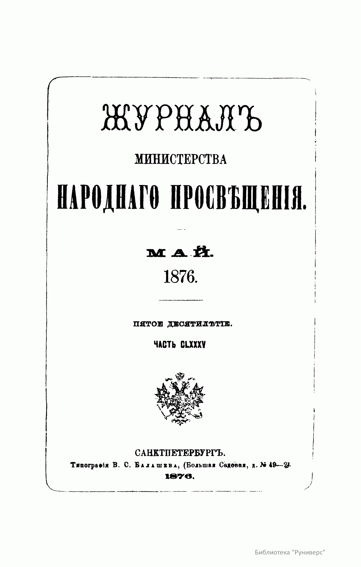 Журналъ Министерства народнаго просвѣщения. Часть CLXXXV