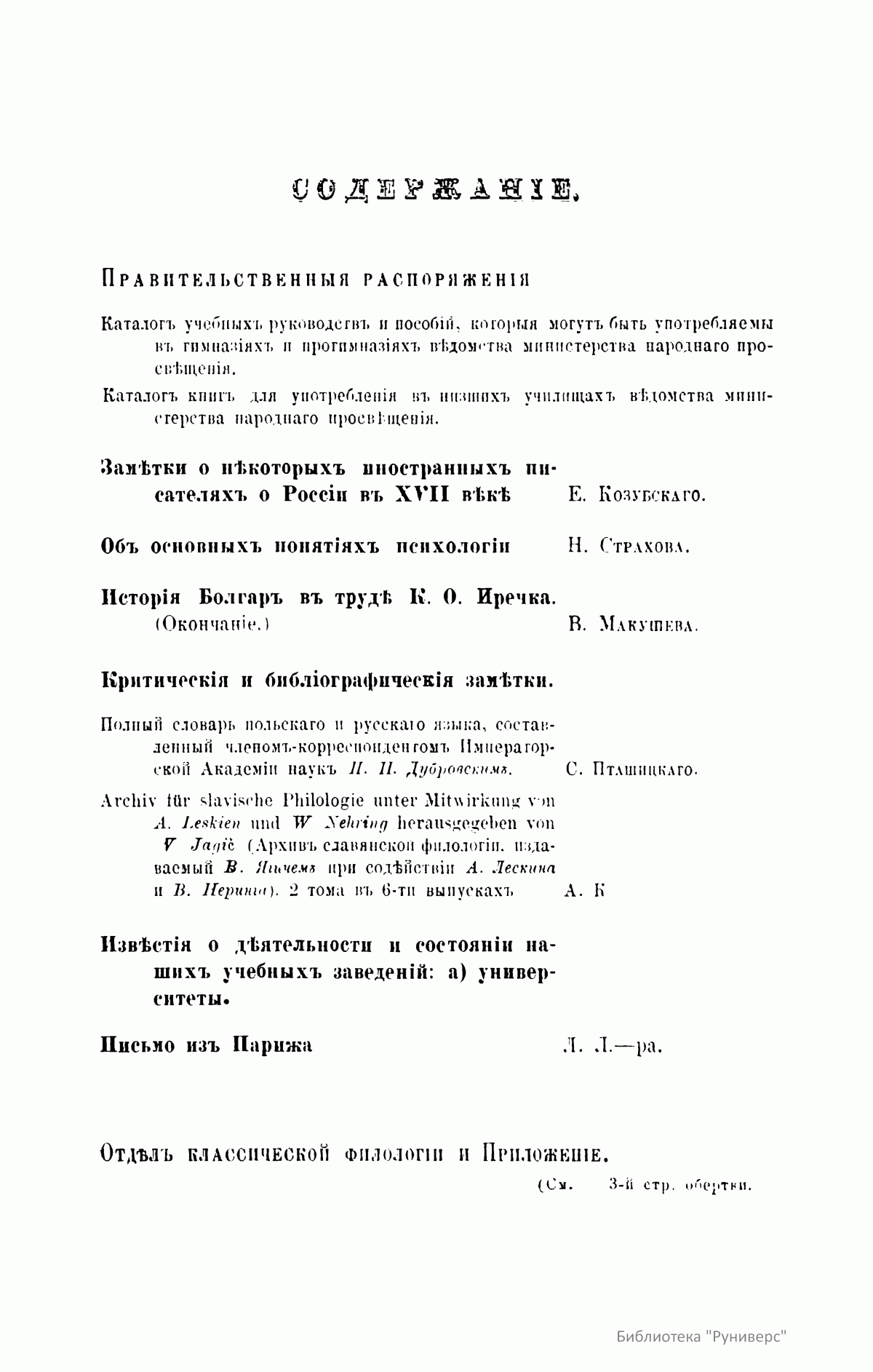 С 1864 года стали выходить указатели к повременным изданиям Министерства народного просвещения начиная с 1803 года.