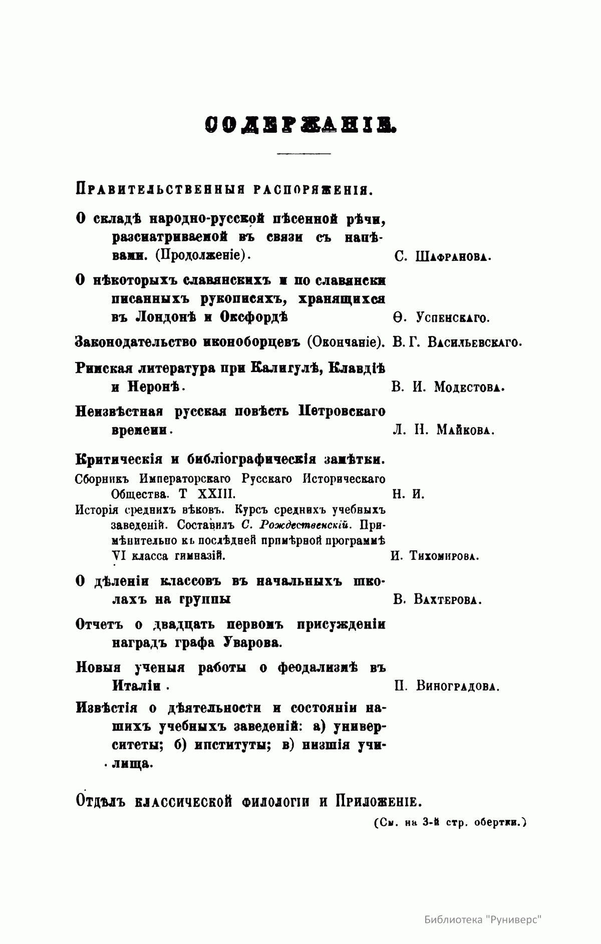 С 1864 года стали выходить указатели к повременным изданиям Министерства народного просвещения начиная с 1803 года.