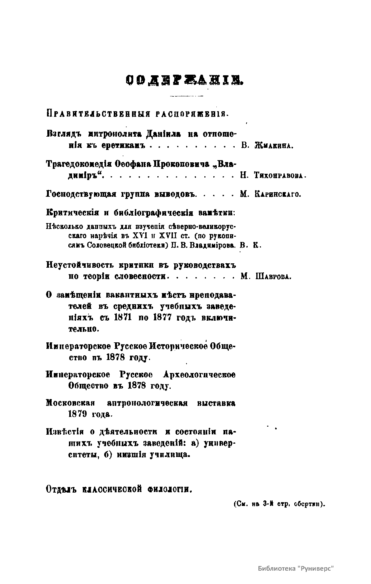 Журнал широкого профиля (гуманитарные науки), но в нем печатались философские статьи, имеется много официального материала, ценного для понимания истории философии в России.