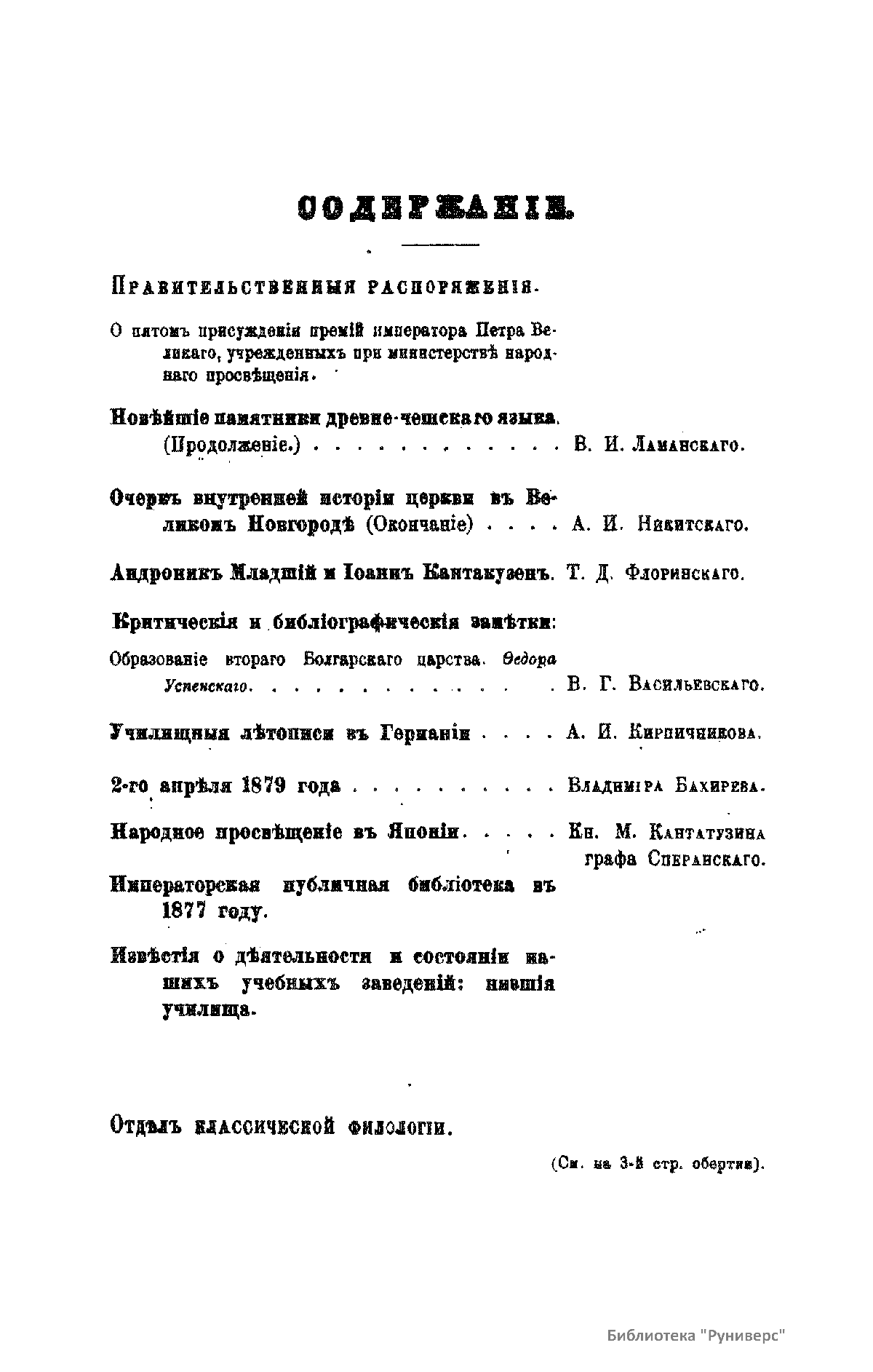 С 1864 года стали выходить указатели к повременным изданиям Министерства народного просвещения начиная с 1803 года.