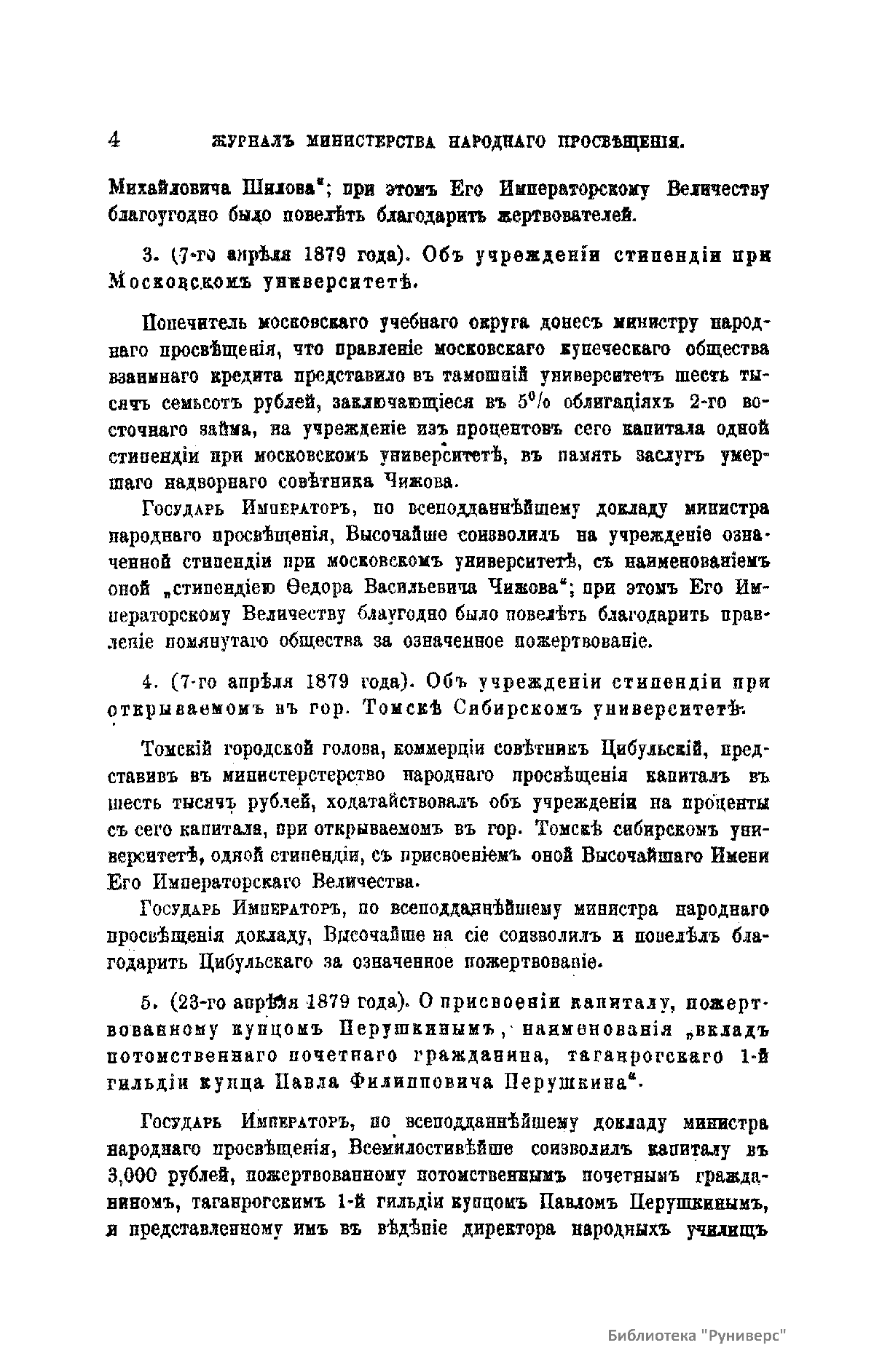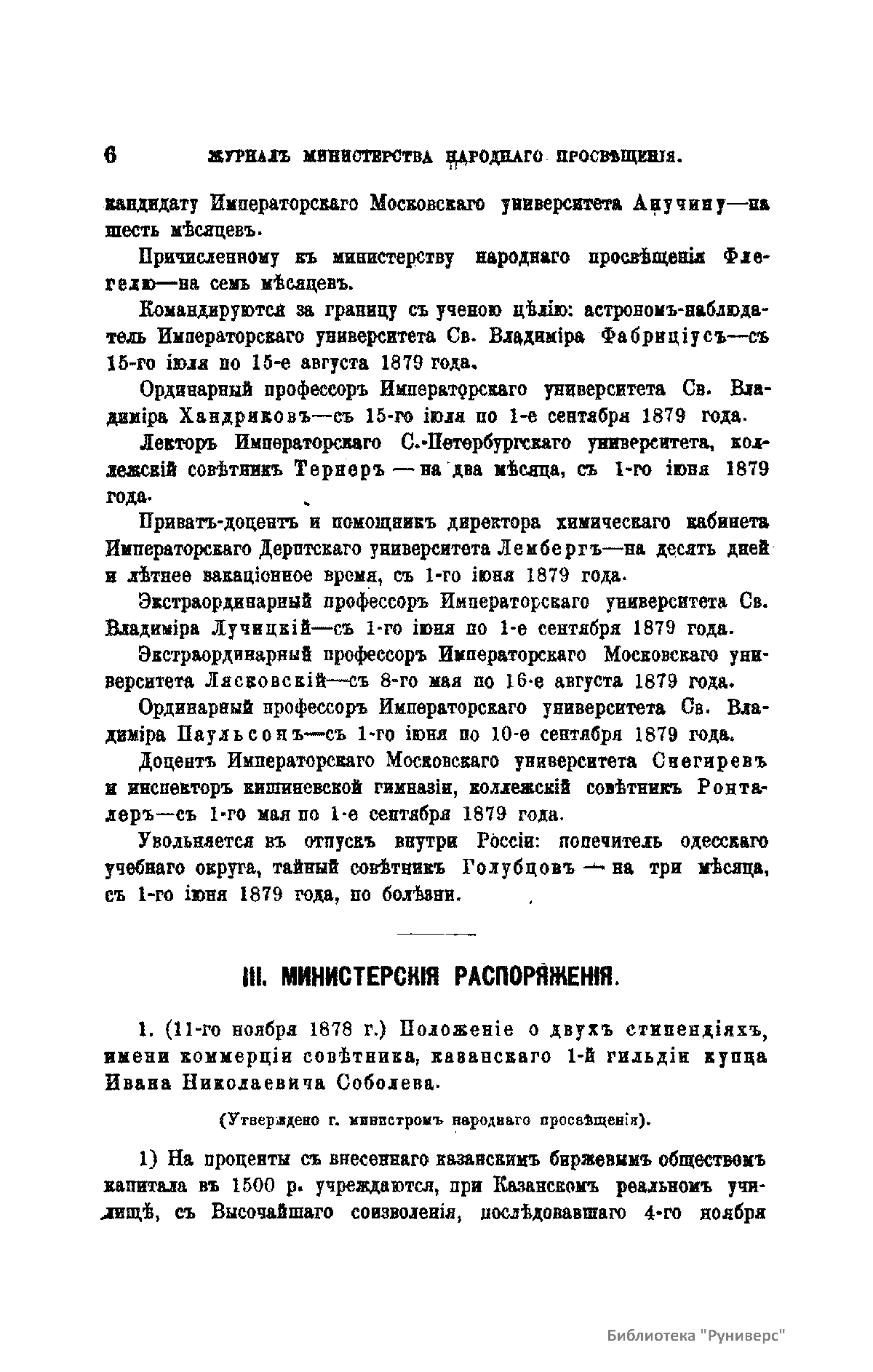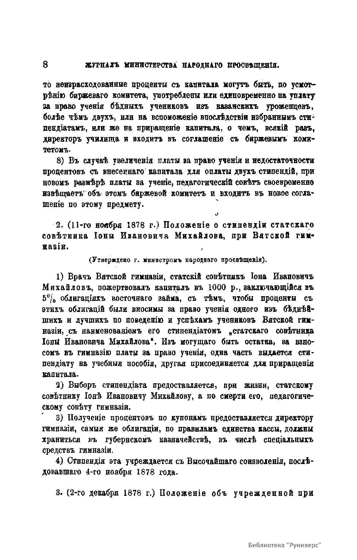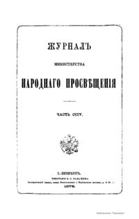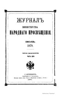 Журнал Министерства народного просвещения выходил с 1834-го по 1917 год. Официальный периодический журнал об успехах просвещения в России. Издатели журнала уверены в том, что «если для каждого человека необходим выход из грубой тьмы невежества и беспрерывное дальнейшее движение к свету, то для народов необходимо попечительное участие правительства в образовании. Только правительство имеет все средства знать и высоту успехов всемирного образования, и настоящие нужды Отечества».