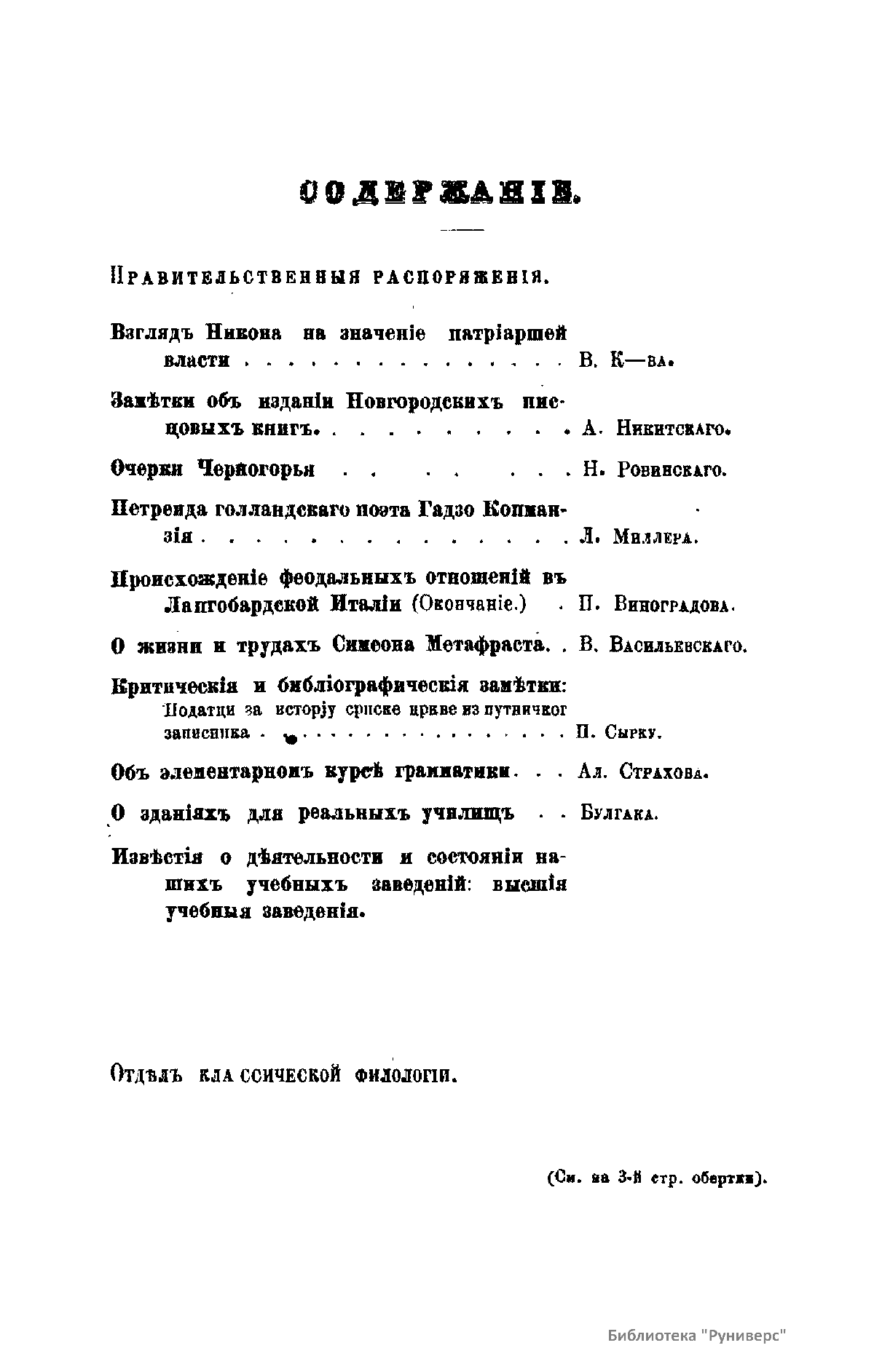 С 1864 года стали выходить указатели к повременным изданиям Министерства народного просвещения начиная с 1803 года.