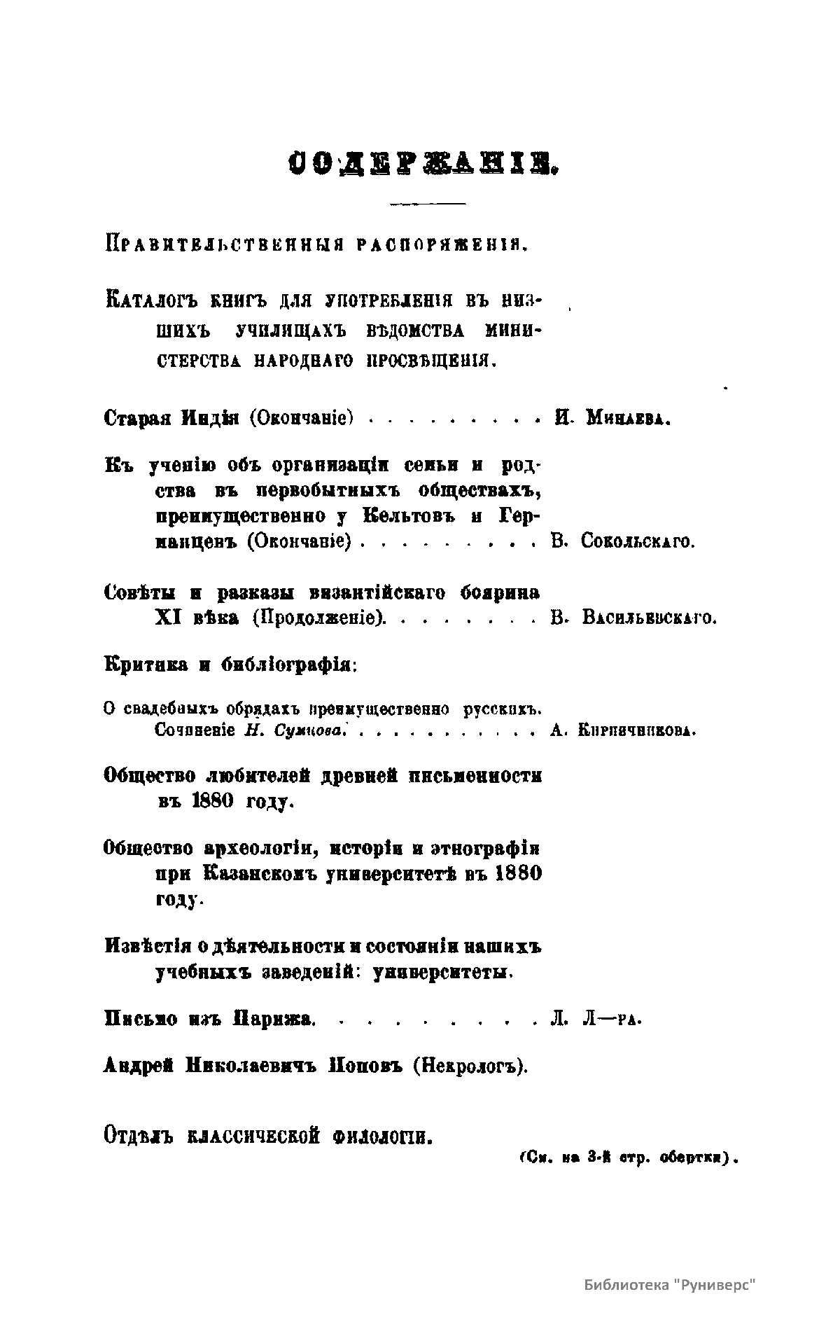С 1864 года стали выходить указатели к повременным изданиям Министерства народного просвещения начиная с 1803 года.