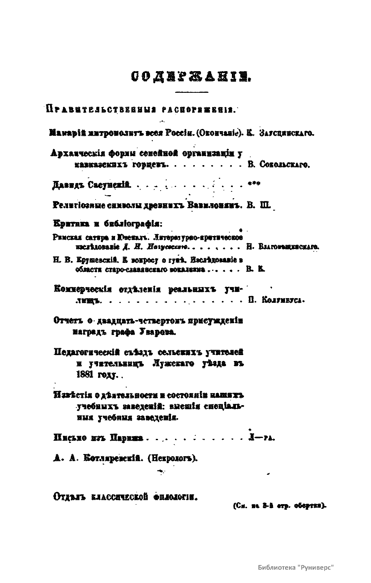 С 1864 года стали выходить указатели к повременным изданиям Министерства народного просвещения начиная с 1803 года.