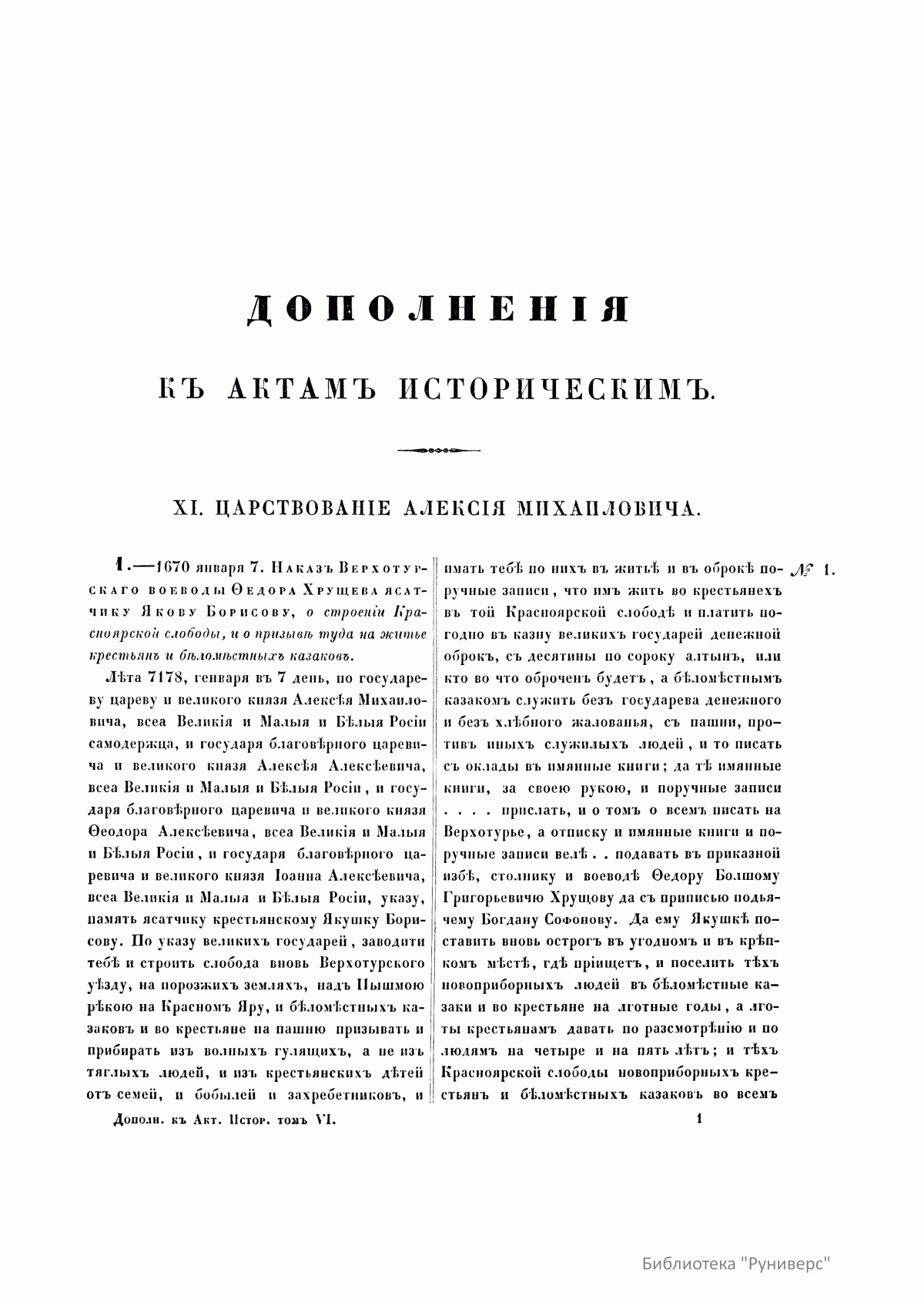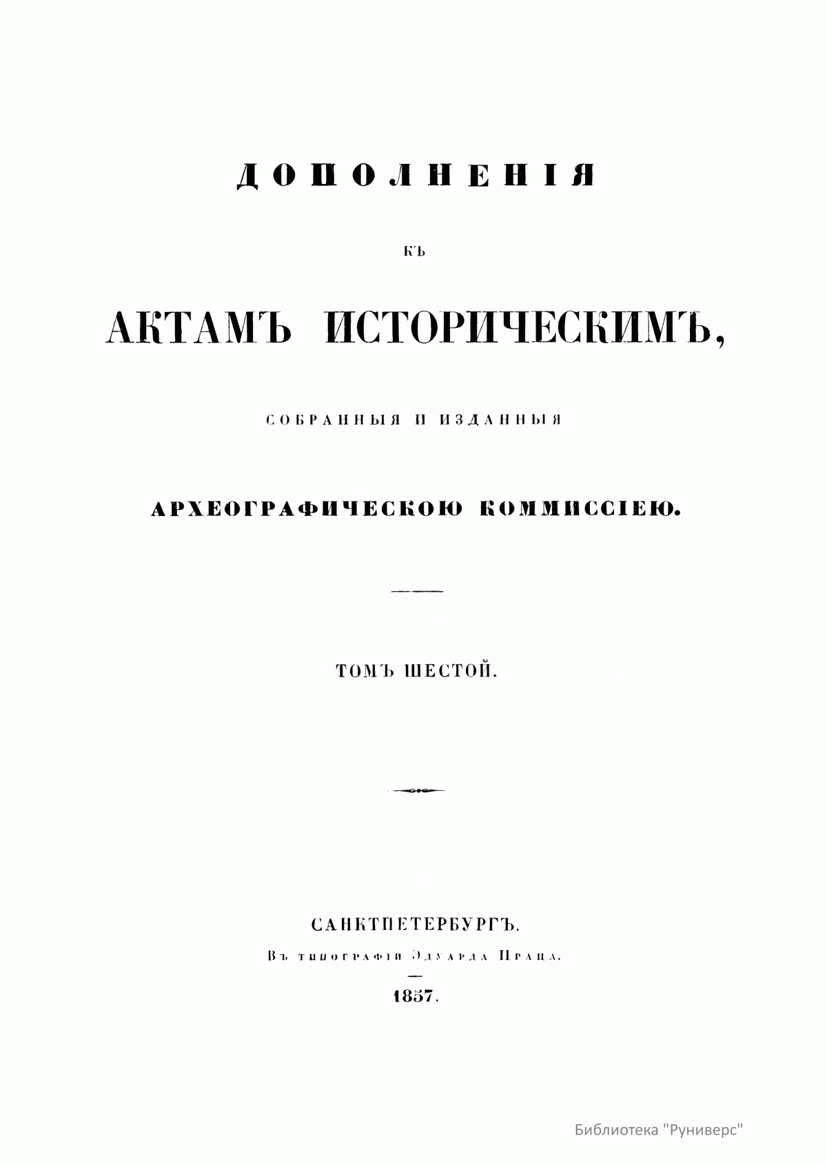 Дополненiя къ актамъ историческимъ, собранныя и изданныя археографическою коммиссiею. Томъ шестой