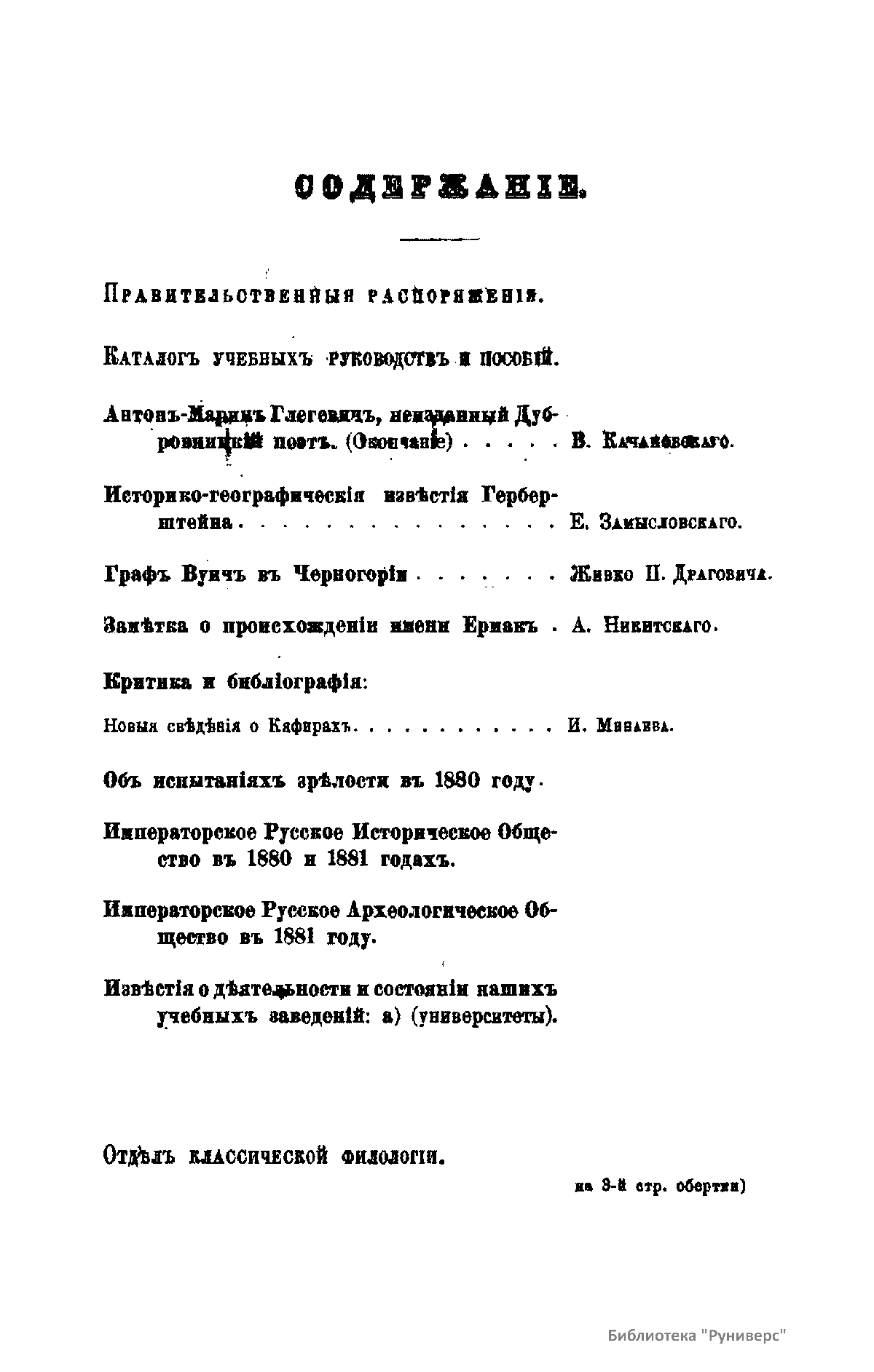 С 1864 года стали выходить указатели к повременным изданиям Министерства народного просвещения начиная с 1803 года.