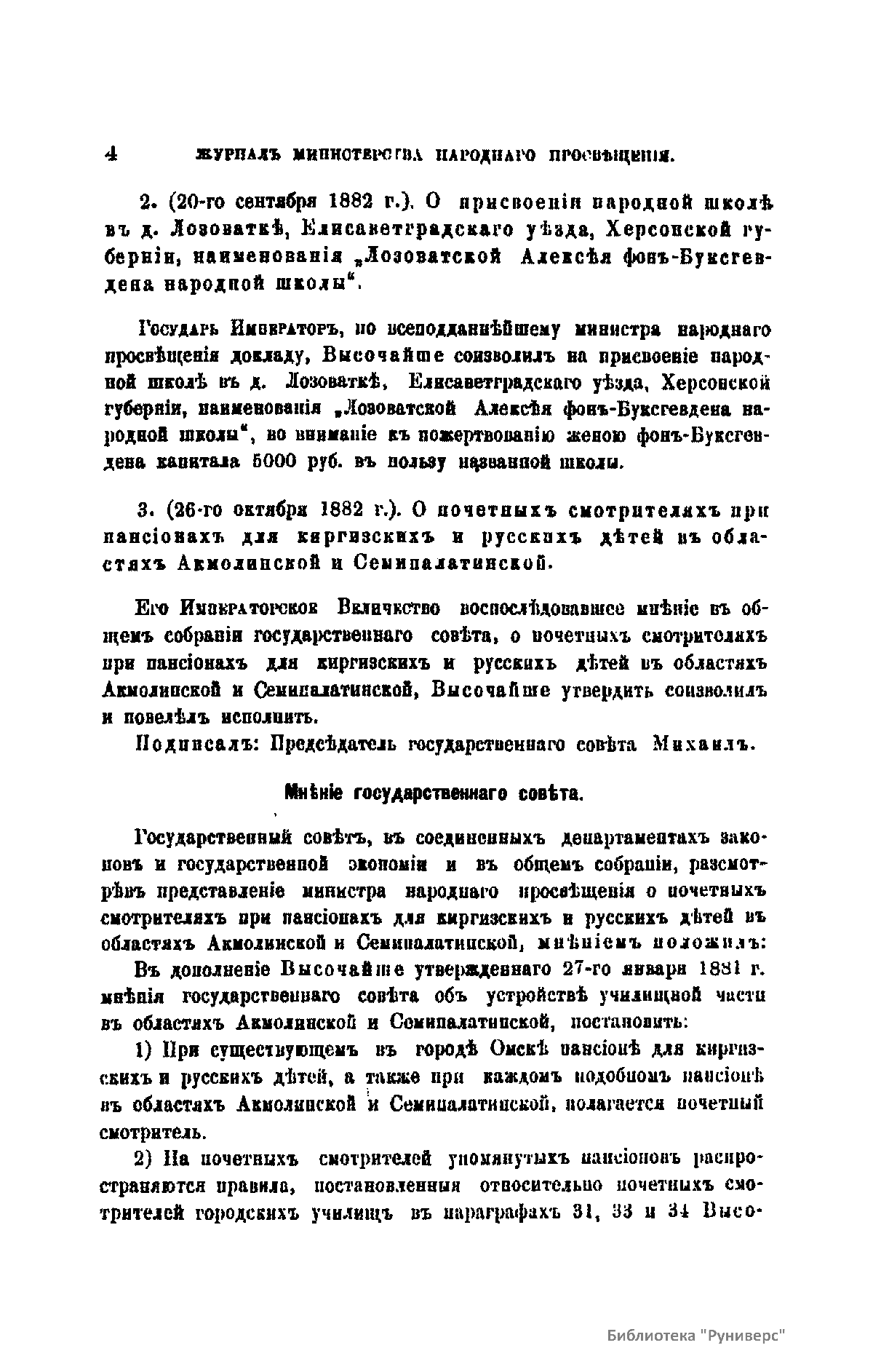 Журнал Министерства народного просвещения выходил с 1834-го по 1917 год. Официальный периодический журнал об успехах просвещения в России. Издатели журнала уверены в том, что «если для каждого человека необходим выход из грубой тьмы невежества и беспрерывное дальнейшее движение к свету, то для народов необходимо попечительное участие правительства в образовании. Только правительство имеет все средства знать и высоту успехов всемирного образования, и настоящие нужды Отечества».