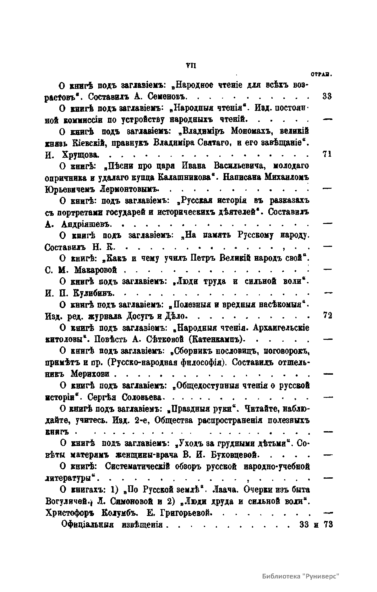 С 1864 года стали выходить указатели к повременным изданиям Министерства народного просвещения начиная с 1803 года.