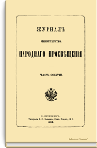 Журнал Министерства народного просвещения выходил с 1834-го по 1917 год. Официальный периодический журнал об успехах просвещения в России. Издатели журнала уверены в том, что «если для каждого человека необходим выход из грубой тьмы невежества и беспрерывное дальнейшее движение к свету, то для народов необходимо попечительное участие правительства в образовании. Только правительство имеет все средства знать и высоту успехов всемирного образования, и настоящие нужды Отечества».