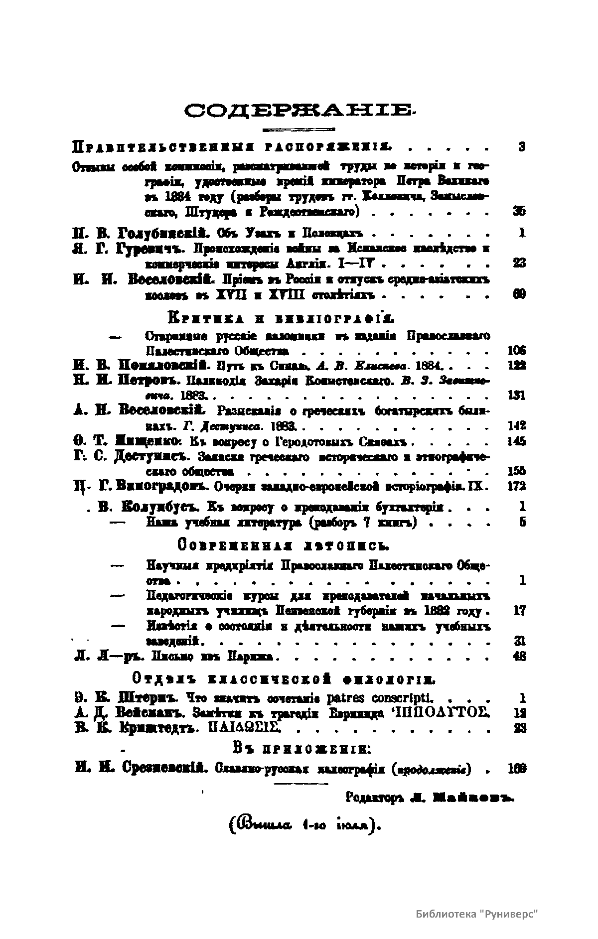 С 1864 года стали выходить указатели к повременным изданиям Министерства народного просвещения начиная с 1803 года.