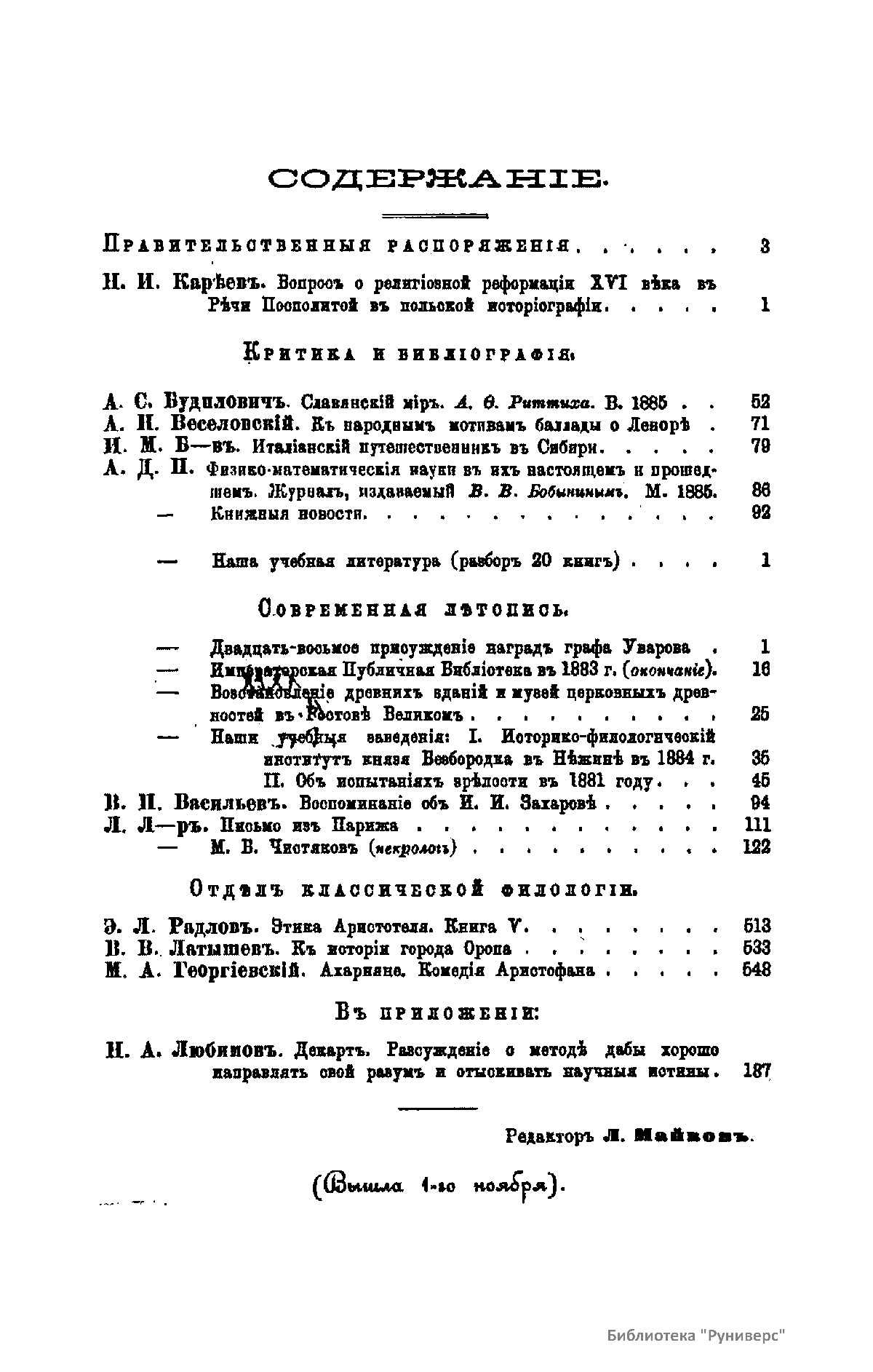 Журнал широкого профиля (гуманитарные науки), но в нем печатались философские статьи, имеется много официального материала, ценного для понимания истории философии в России.