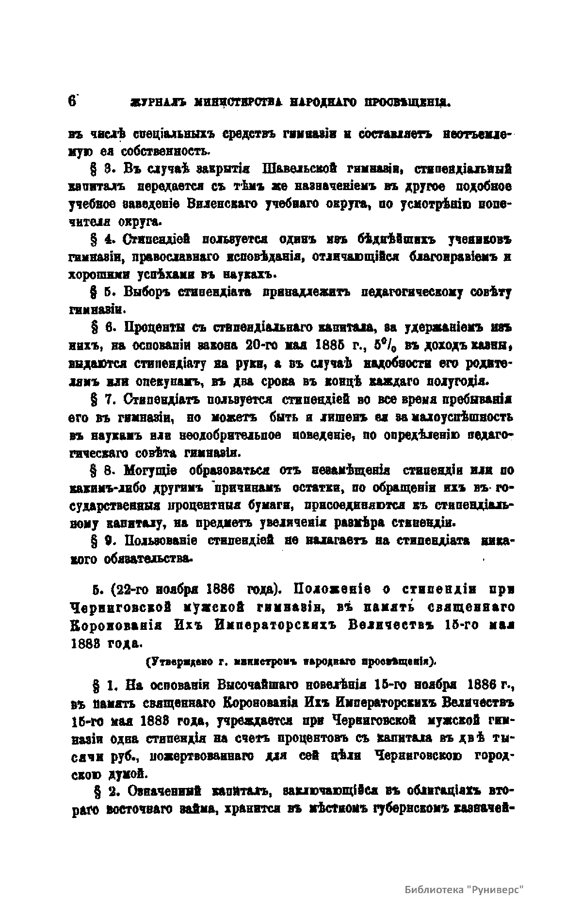 Журнал Министерства народного просвещения выходил с 1834-го по 1917 год. Официальный периодический журнал об успехах просвещения в России. Издатели журнала уверены в том, что «если для каждого человека необходим выход из грубой тьмы невежества и беспрерывное дальнейшее движение к свету, то для народов необходимо попечительное участие правительства в образовании. Только правительство имеет все средства знать и высоту успехов всемирного образования, и настоящие нужды Отечества».