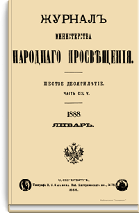 Журнал Министерства народного просвещения выходил с 1834-го по 1917 год. Официальный периодический журнал об успехах просвещения в России. Издатели журнала уверены в том, что «если для каждого человека необходим выход из грубой тьмы невежества и беспрерывное дальнейшее движение к свету, то для народов необходимо попечительное участие правительства в образовании. Только правительство имеет все средства знать и высоту успехов всемирного образования, и настоящие нужды Отечества».