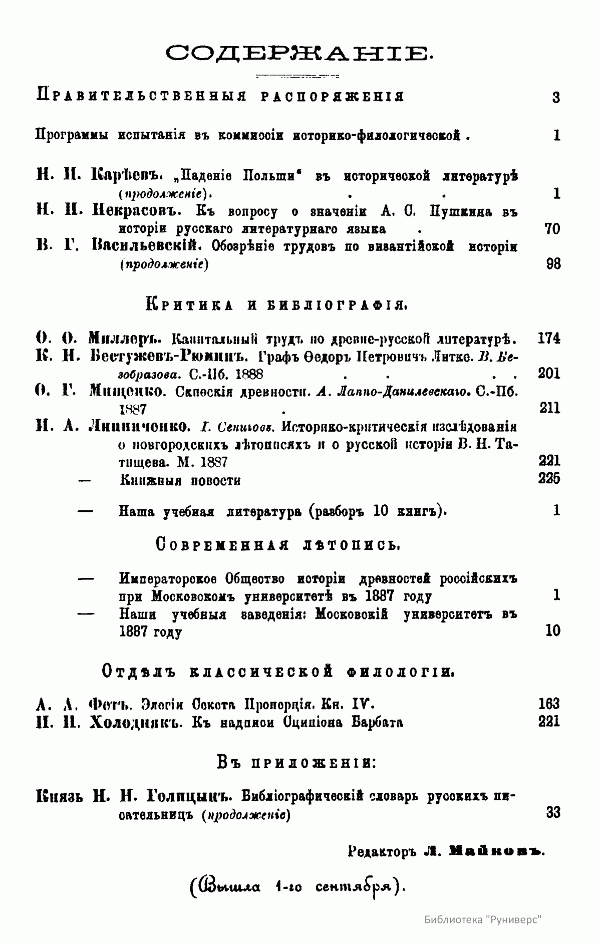 С 1864 года стали выходить указатели к повременным изданиям Министерства народного просвещения начиная с 1803 года.