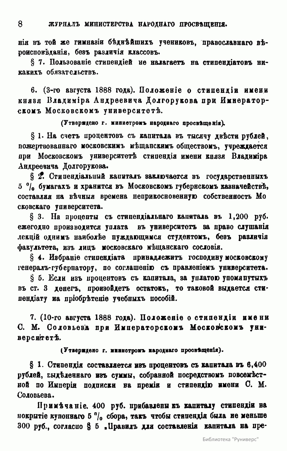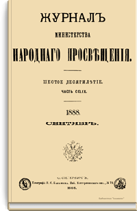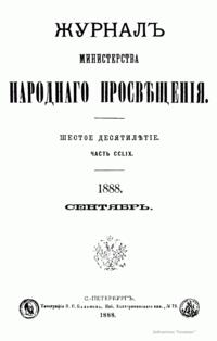Журнал Министерства народного просвещения выходил с 1834-го по 1917 год. Официальный периодический журнал об успехах просвещения в России. Издатели журнала уверены в том, что «если для каждого человека необходим выход из грубой тьмы невежества и беспрерывное дальнейшее движение к свету, то для народов необходимо попечительное участие правительства в образовании. Только правительство имеет все средства знать и высоту успехов всемирного образования, и настоящие нужды Отечества».