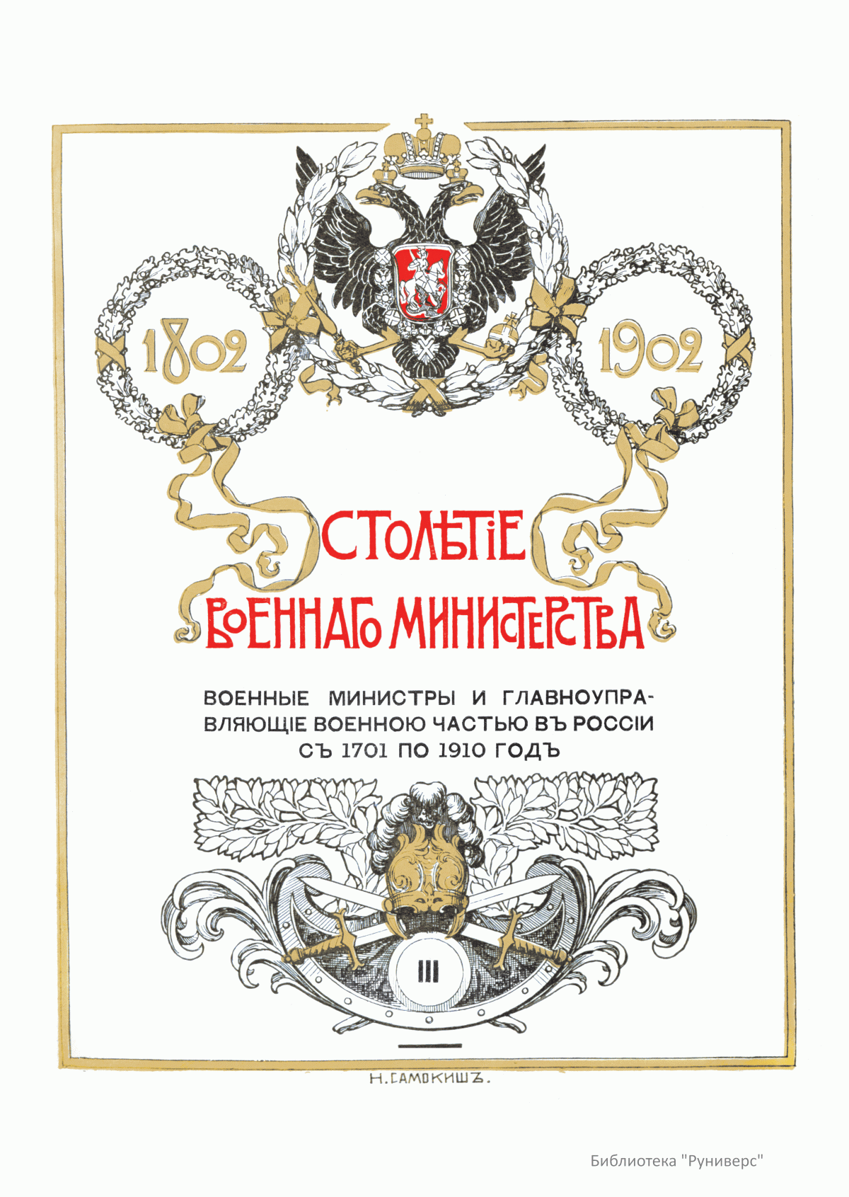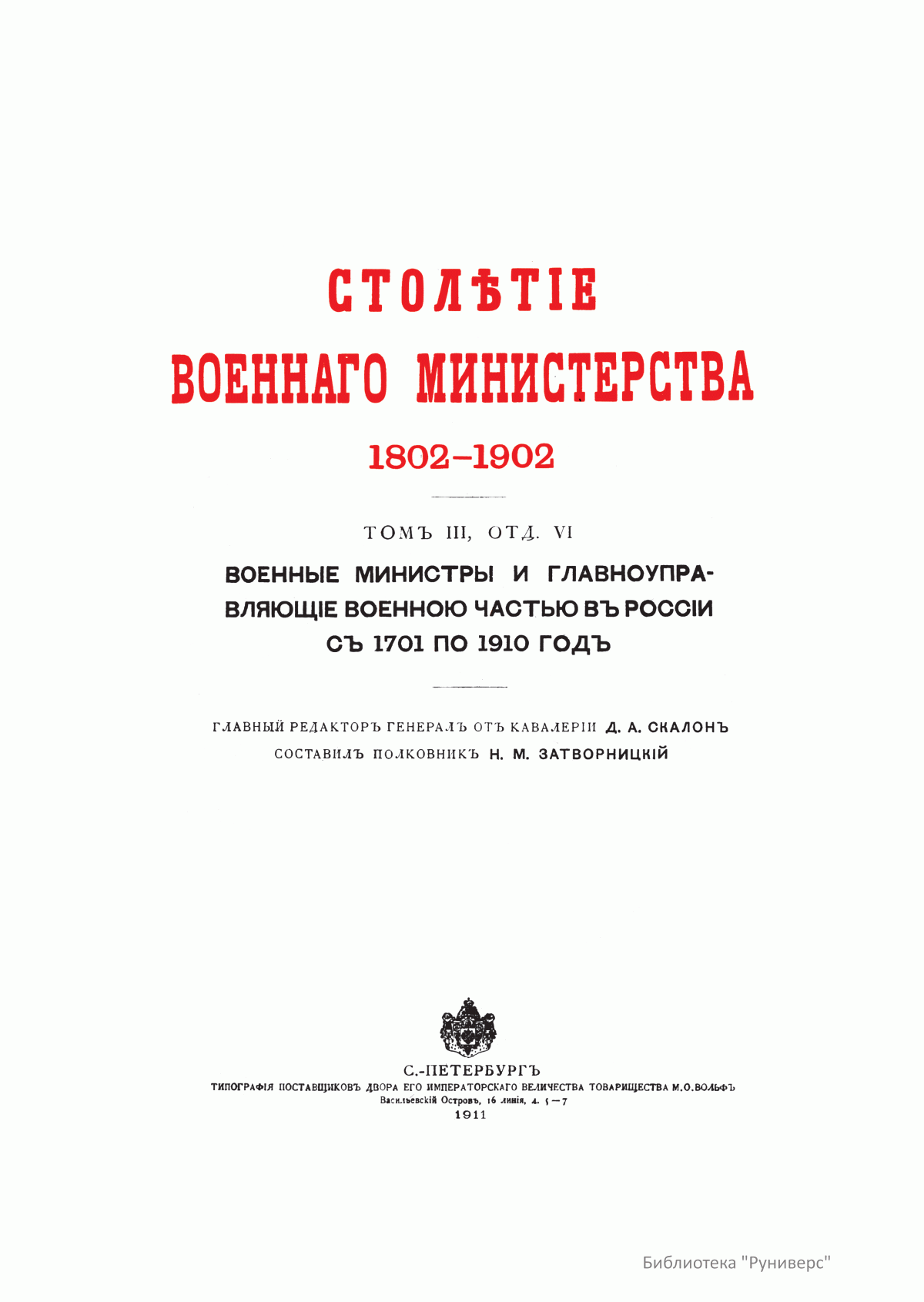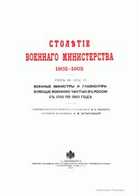 Столѣтiе военнаго министерства. 1802-1902. Военные министры и главноуправляющiе военною частью въ Россiи съ 1701 по 1910 годъ