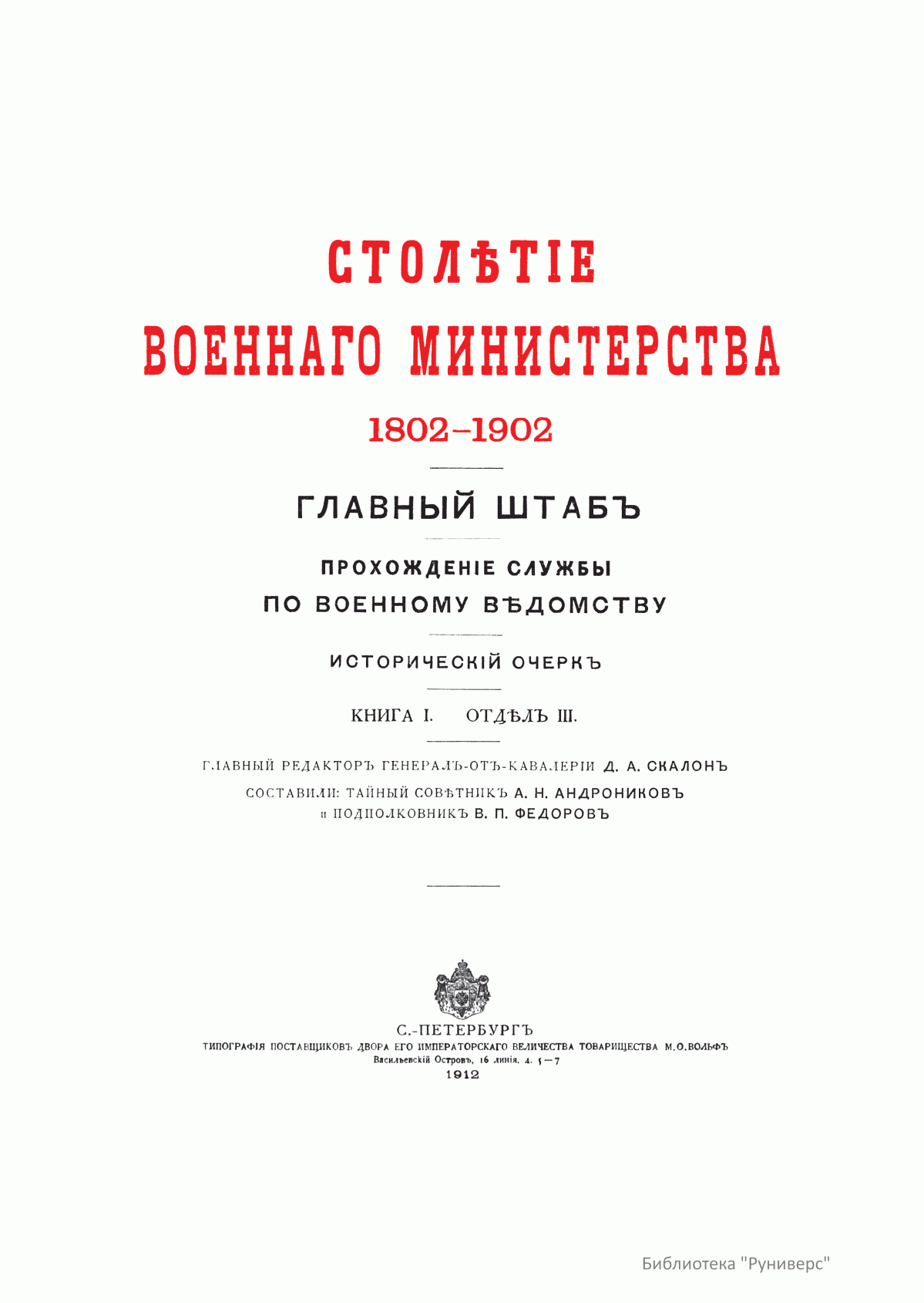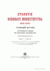 Столѣтiе военнаго министерства. 1802-1902. Главный штабъ. Прохожденiе службы по военному вѣдомству. Историческiй очеркъ