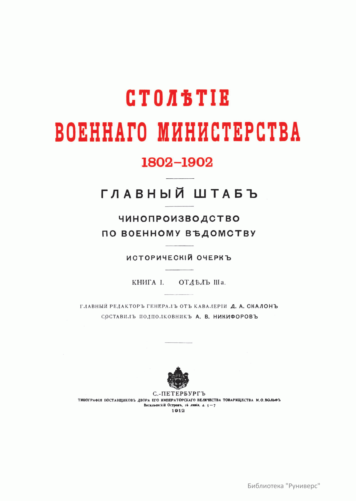 Столѣтiе военнаго министерства. 1802-1902. Главный штабъ. Чинопроизводство по военному вѣдомству. Историческiй очеркъ