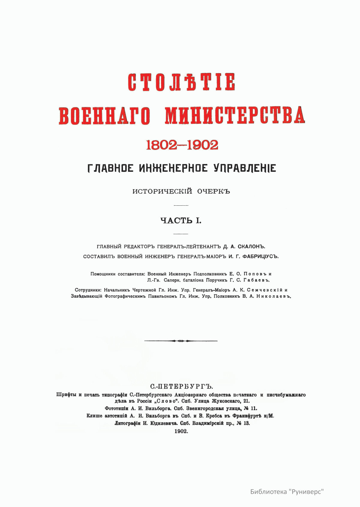 Столѣтiе военнаго министерства. 1802-1902. Главное инженерное управленiе. Историческiй очеркъ. Первый очеркъ