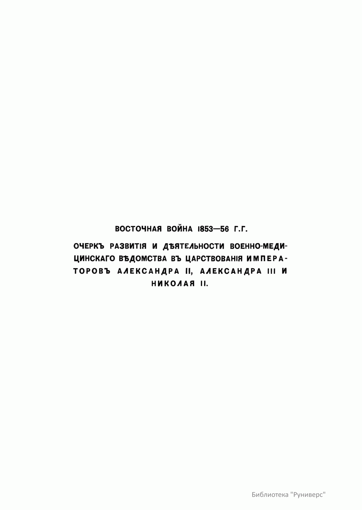 Столетие военного министерства. 1802-1902. Восточная война 1853-56 гг. Очерк развития и деятельности военно-медицинского ведомства в царствования Императоров Александра II, Александра III и Николая II