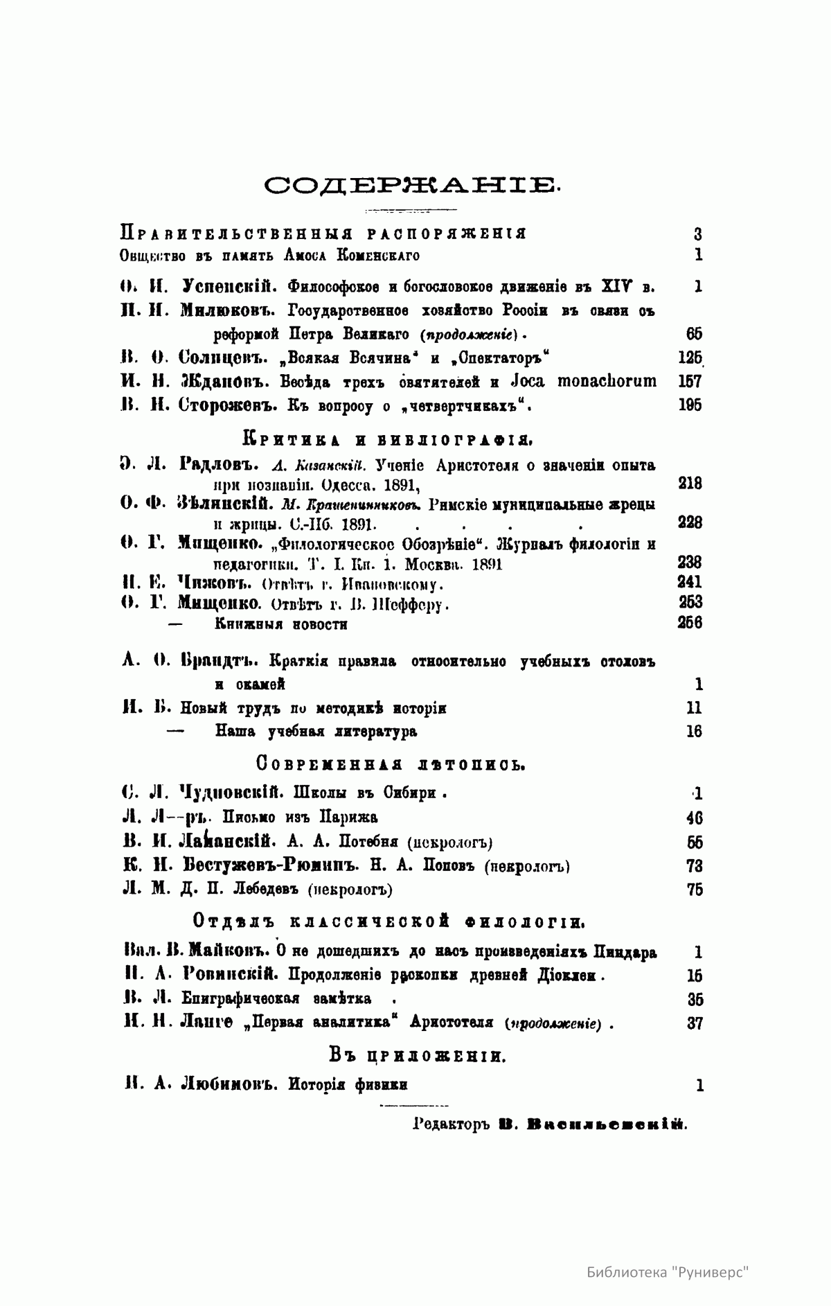 Журнал широкого профиля (гуманитарные науки), но в нем печатались философские статьи, имеется много официального материала, ценного для понимания истории философии в России.