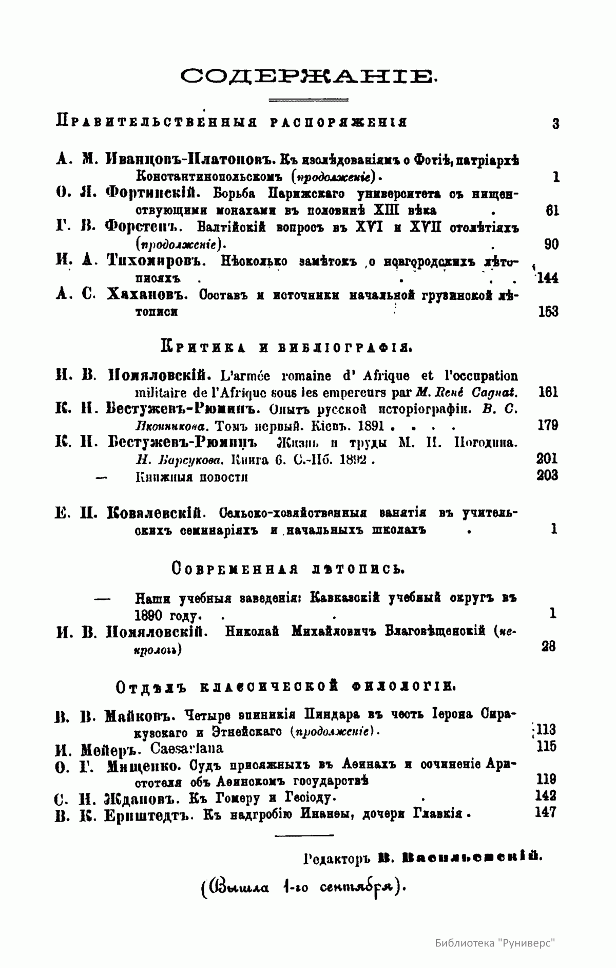С 1864 года стали выходить указатели к повременным изданиям Министерства народного просвещения начиная с 1803 года.
