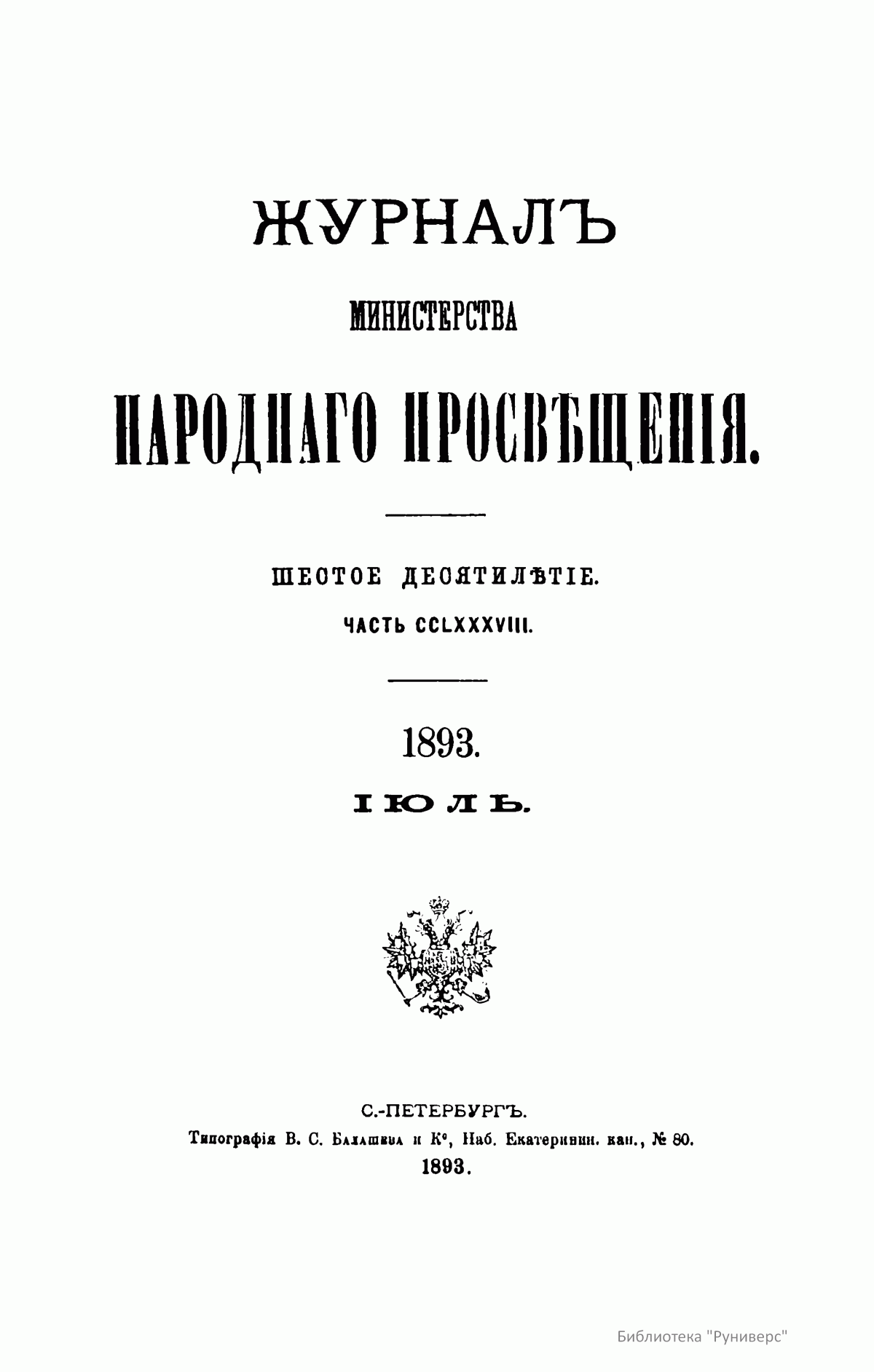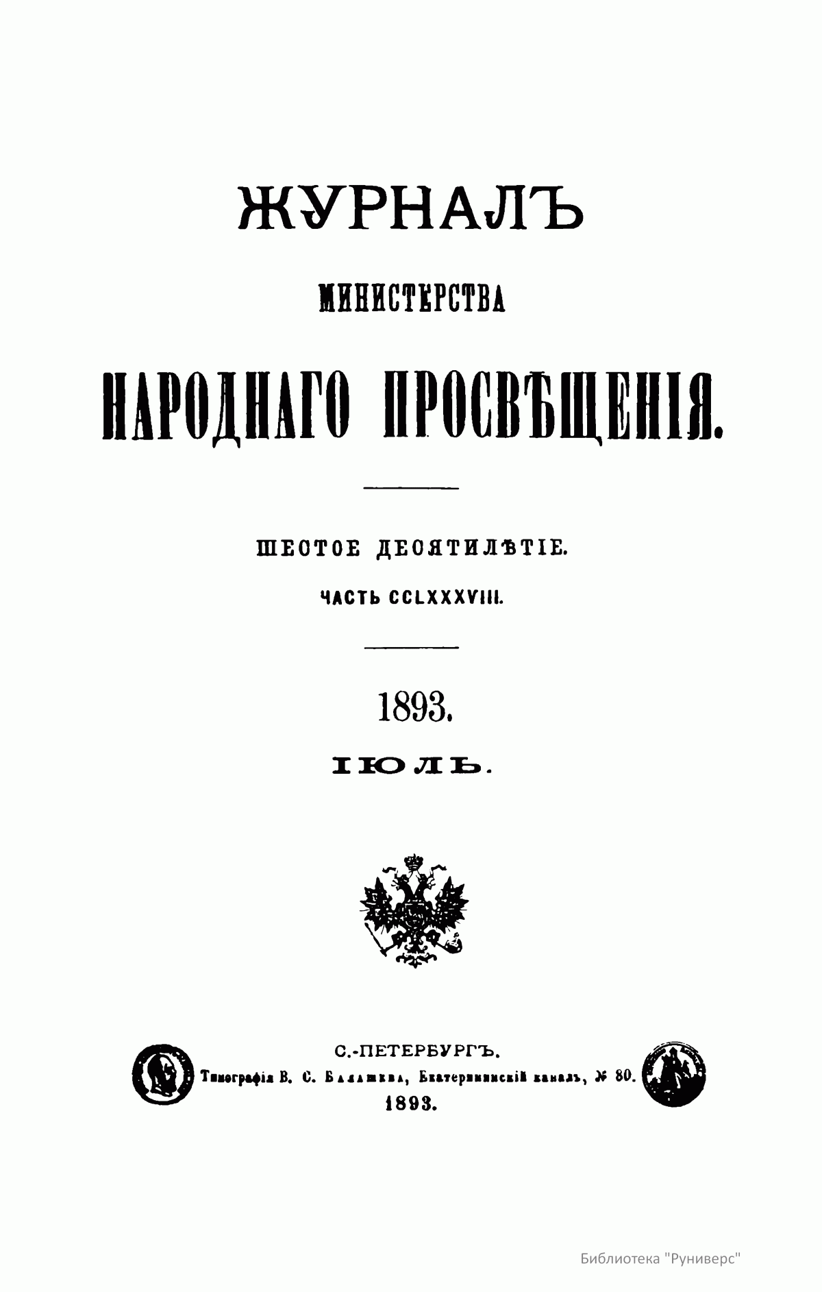 Журнал Министерства народного просвещения. Часть CCLXXXVIII
