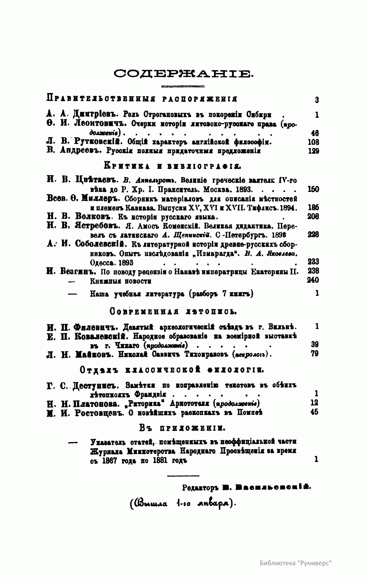Журнал широкого профиля (гуманитарные науки), но в нем печатались философские статьи, имеется много официального материала, ценного для понимания истории философии в России.