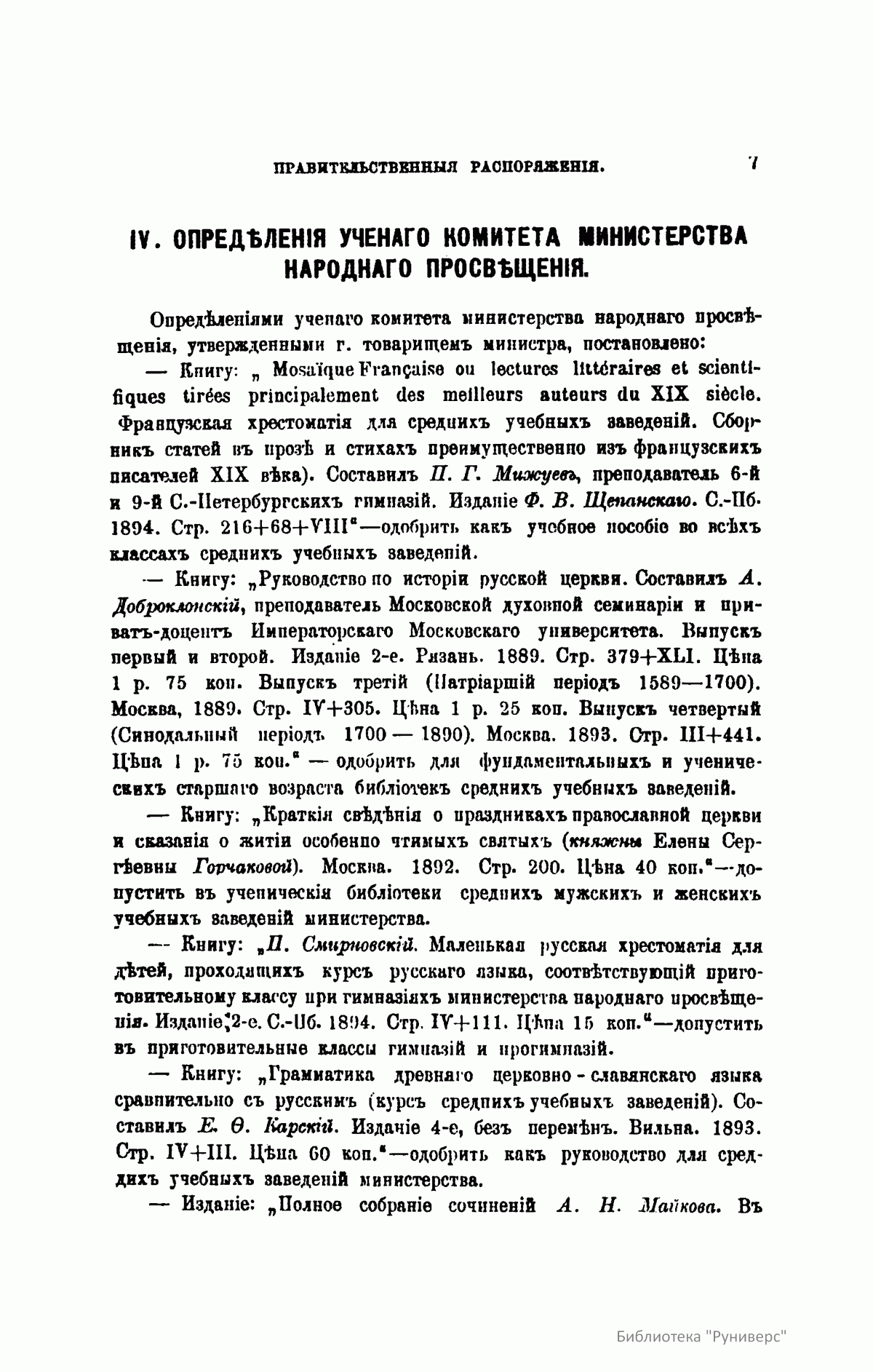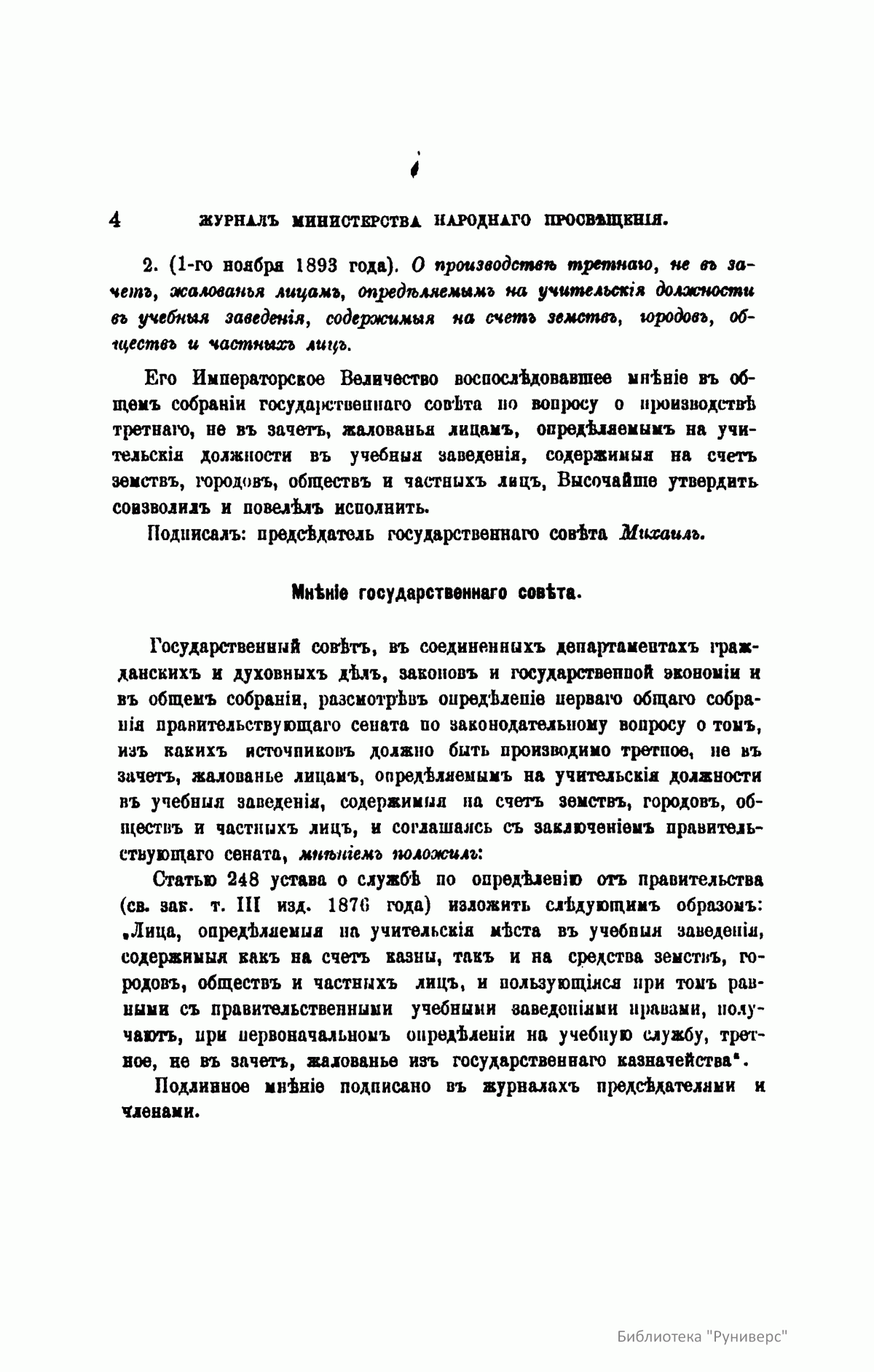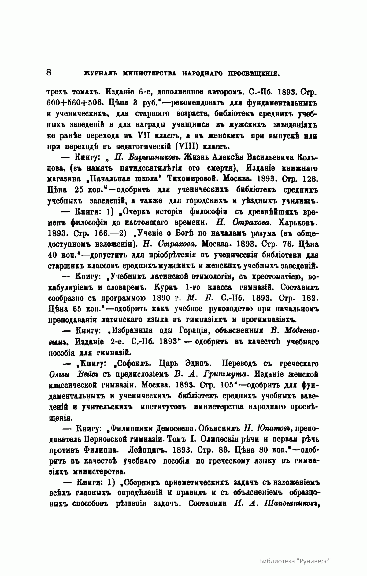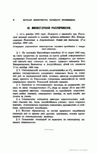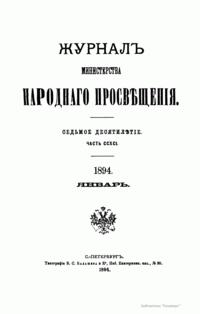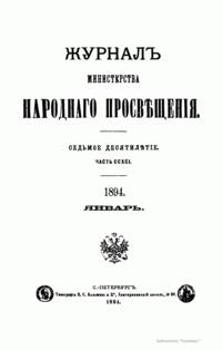 Журнал Министерства народного просвещения выходил с 1834-го по 1917 год. Официальный периодический журнал об успехах просвещения в России. Издатели журнала уверены в том, что «если для каждого человека необходим выход из грубой тьмы невежества и беспрерывное дальнейшее движение к свету, то для народов необходимо попечительное участие правительства в образовании. Только правительство имеет все средства знать и высоту успехов всемирного образования, и настоящие нужды Отечества».