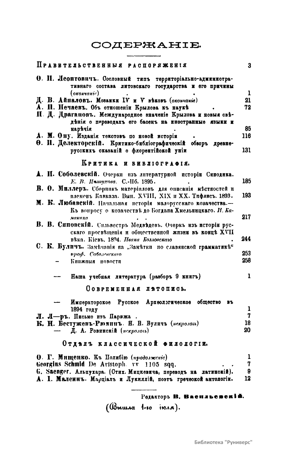 Журнал широкого профиля (гуманитарные науки), но в нем печатались философские статьи, имеется много официального материала, ценного для понимания истории философии в России.