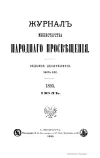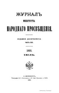 Журнал Министерства народного просвещения выходил с 1834-го по 1917 год. Официальный периодический журнал об успехах просвещения в России. Издатели журнала уверены в том, что «если для каждого человека необходим выход из грубой тьмы невежества и беспрерывное дальнейшее движение к свету, то для народов необходимо попечительное участие правительства в образовании. Только правительство имеет все средства знать и высоту успехов всемирного образования, и настоящие нужды Отечества».