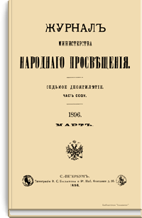 Журнал Министерства народного просвещения выходил с 1834-го по 1917 год. Официальный периодический журнал об успехах просвещения в России. Издатели журнала уверены в том, что «если для каждого человека необходим выход из грубой тьмы невежества и беспрерывное дальнейшее движение к свету, то для народов необходимо попечительное участие правительства в образовании. Только правительство имеет все средства знать и высоту успехов всемирного образования, и настоящие нужды Отечества».