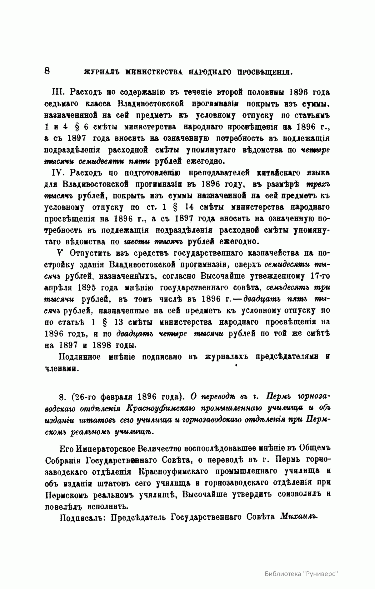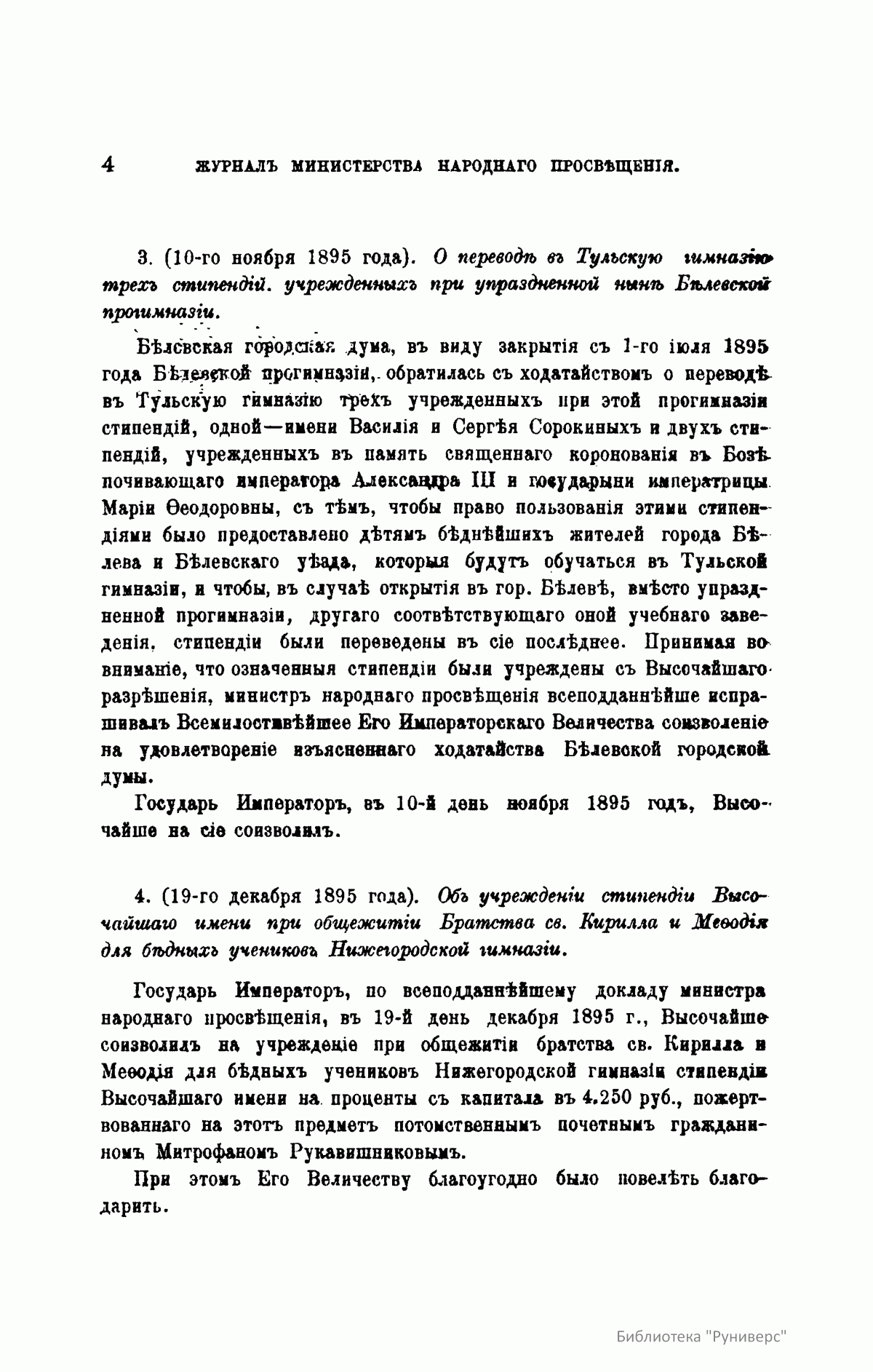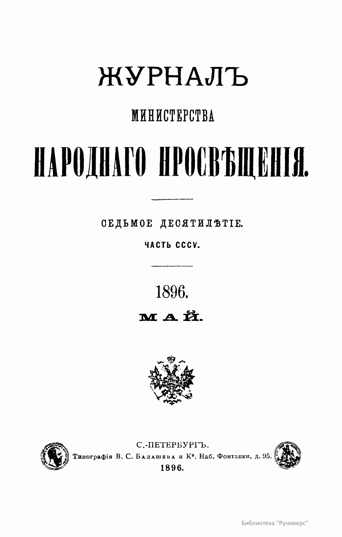 Журнал Министерства народного просвещения выходил с 1834-го по 1917 год. Официальный периодический журнал об успехах просвещения в России. Издатели журнала уверены в том, что «если для каждого человека необходим выход из грубой тьмы невежества и беспрерывное дальнейшее движение к свету, то для народов необходимо попечительное участие правительства в образовании. Только правительство имеет все средства знать и высоту успехов всемирного образования, и настоящие нужды Отечества».