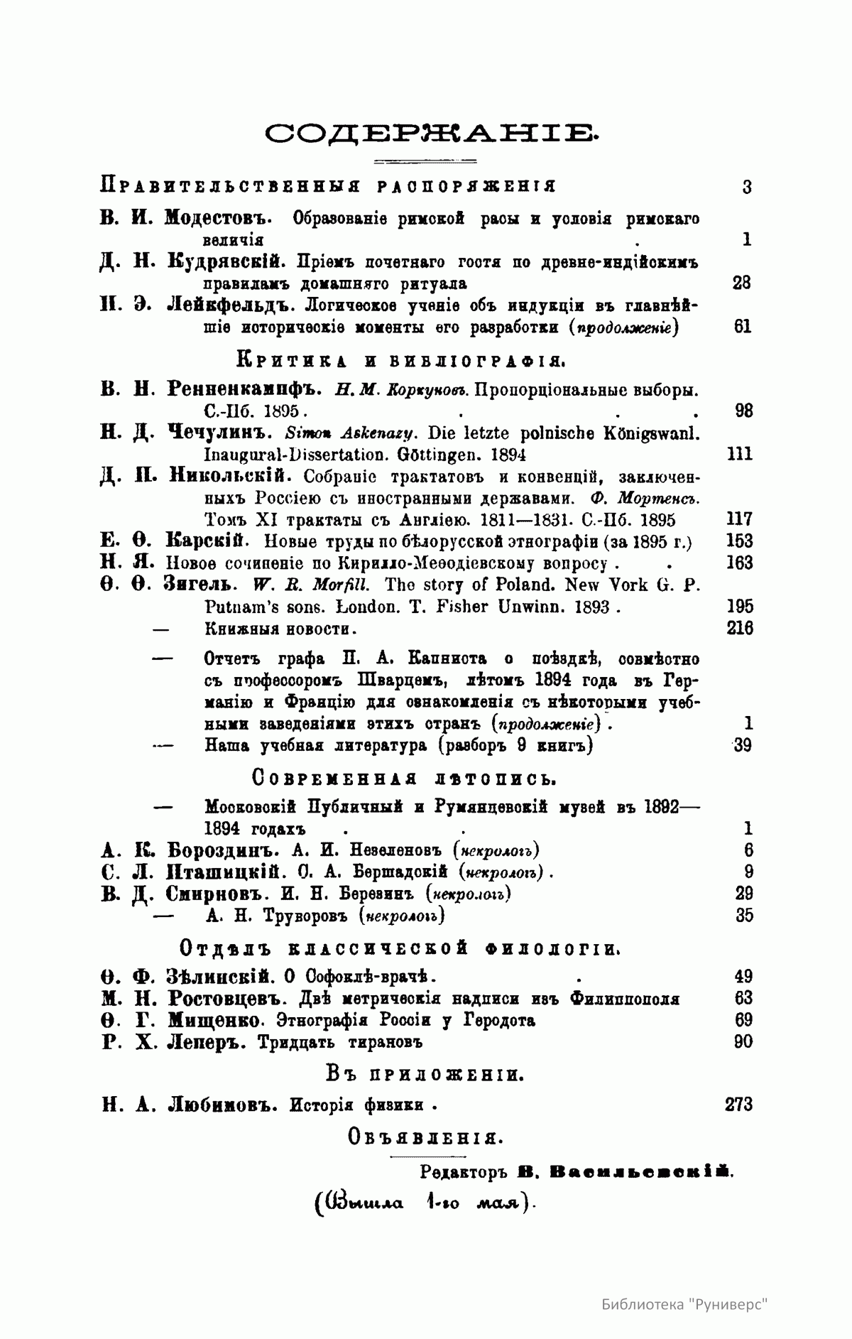 С 1864 года стали выходить указатели к повременным изданиям Министерства народного просвещения начиная с 1803 года.