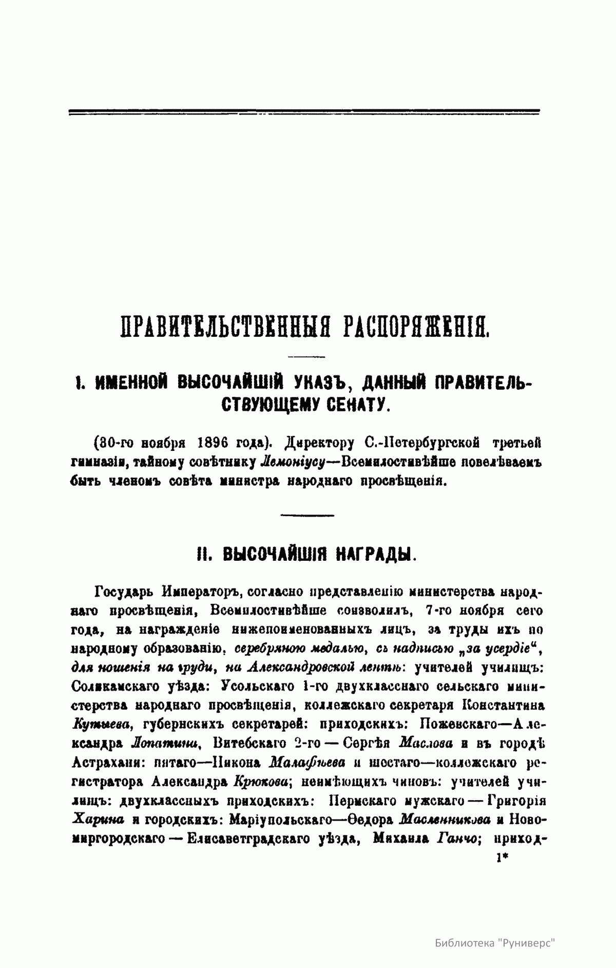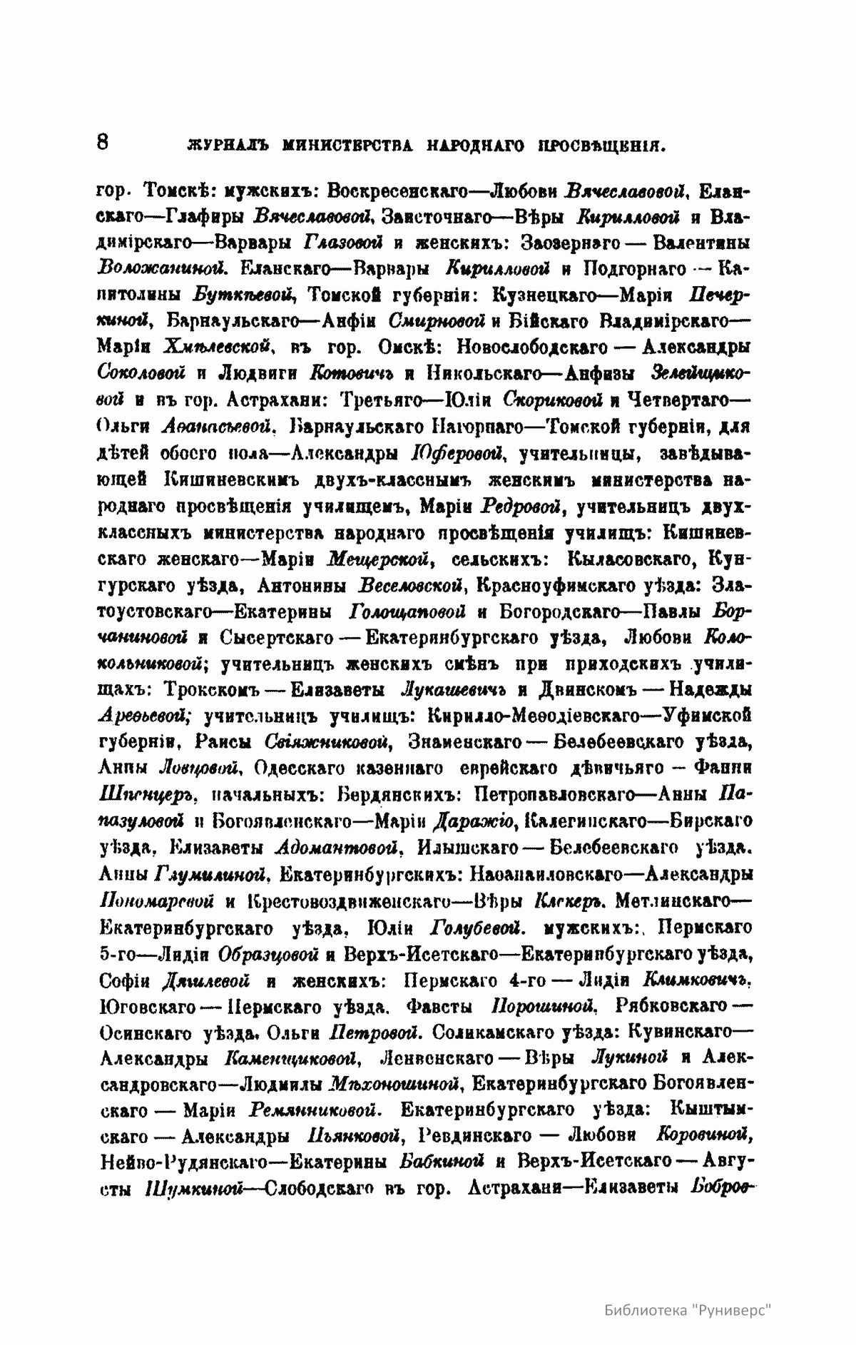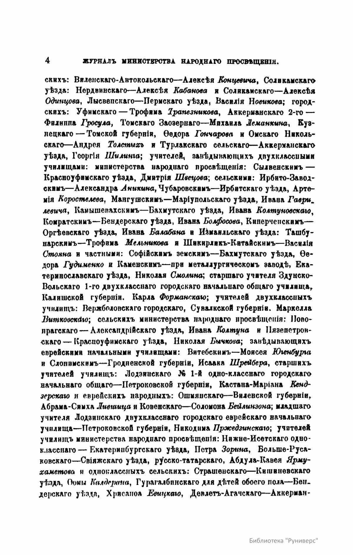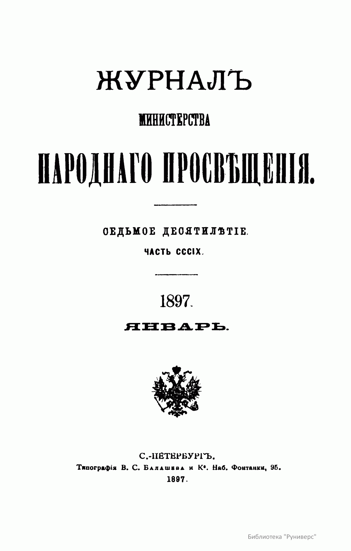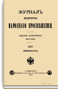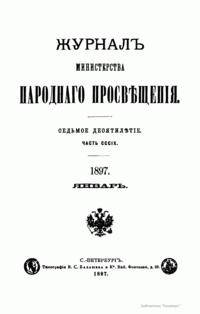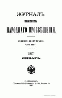 Журнал Министерства народного просвещения выходил с 1834-го по 1917 год. Официальный периодический журнал об успехах просвещения в России. Издатели журнала уверены в том, что «если для каждого человека необходим выход из грубой тьмы невежества и беспрерывное дальнейшее движение к свету, то для народов необходимо попечительное участие правительства в образовании. Только правительство имеет все средства знать и высоту успехов всемирного образования, и настоящие нужды Отечества».