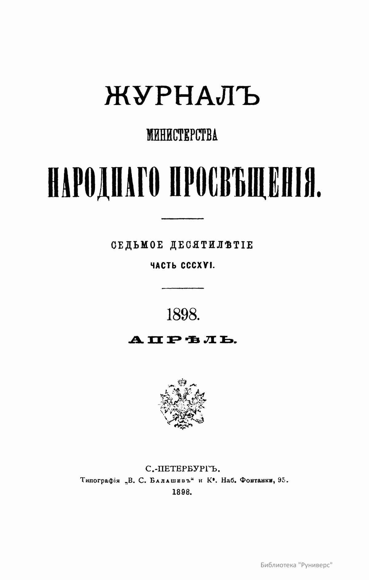 Журнал Министерства народного просвещения. Часть CCCXVI
