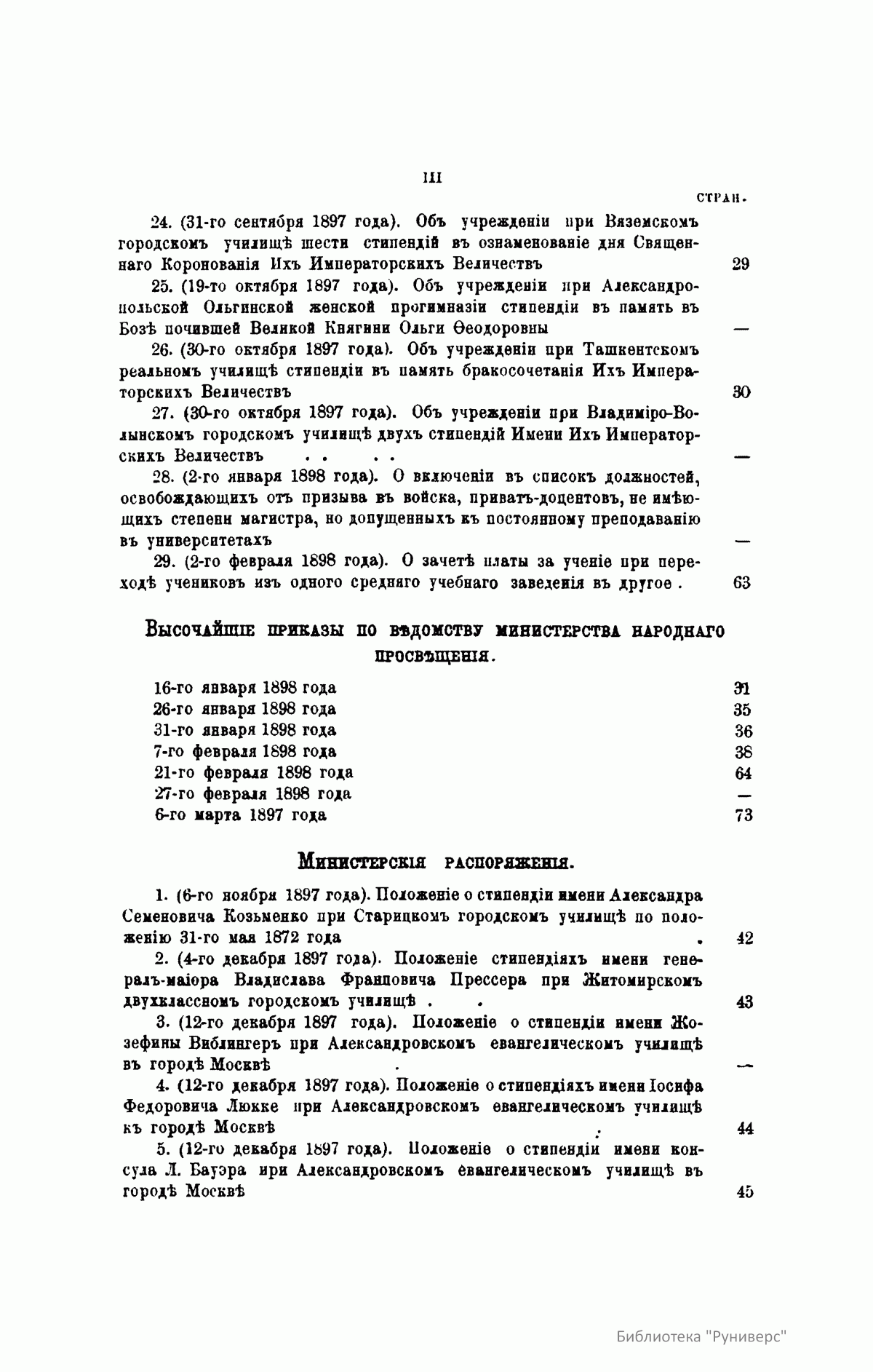 С 1864 года стали выходить указатели к повременным изданиям Министерства народного просвещения начиная с 1803 года.