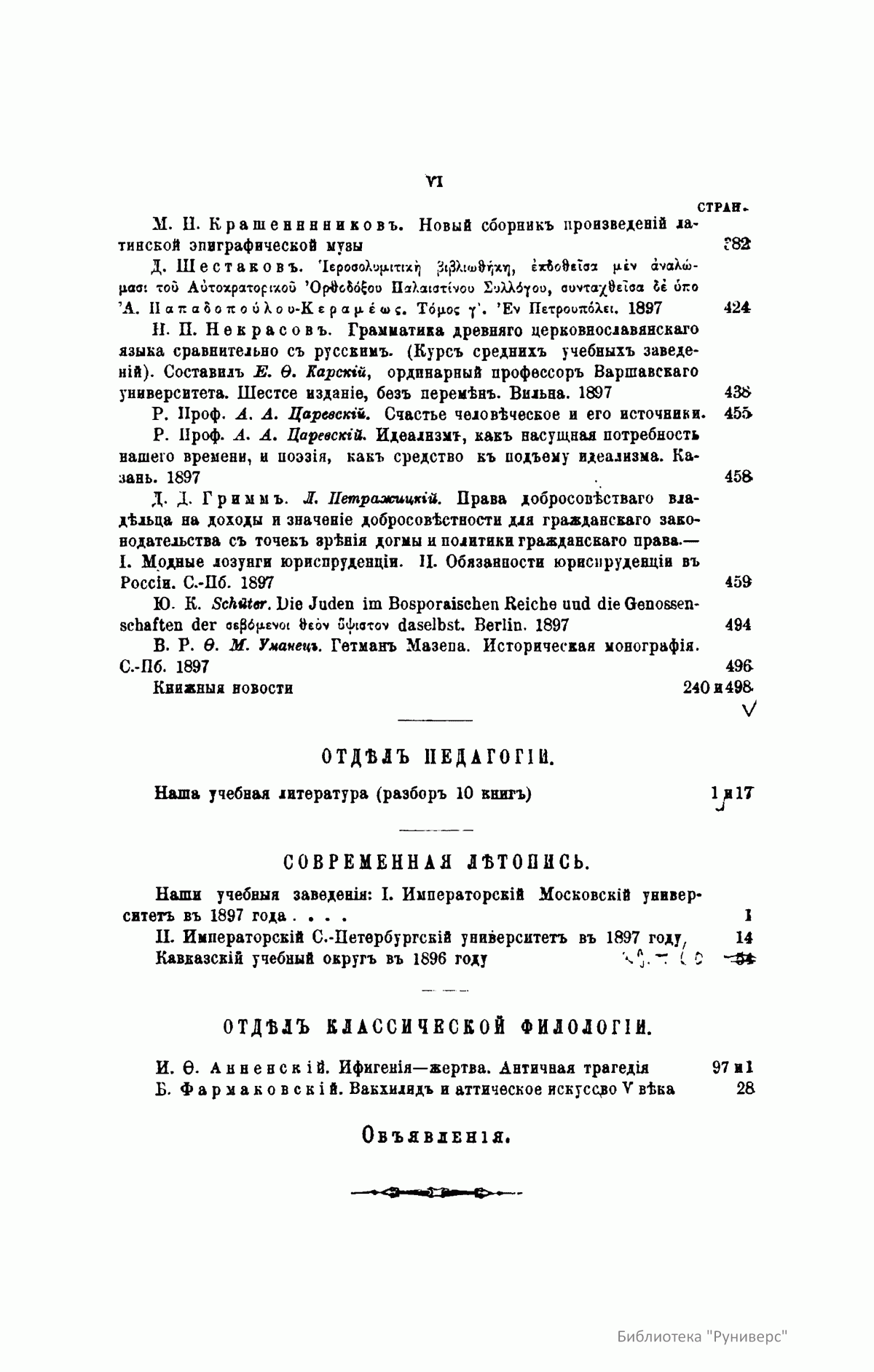 Журнал широкого профиля (гуманитарные науки), но в нем печатались философские статьи, имеется много официального материала, ценного для понимания истории философии в России.