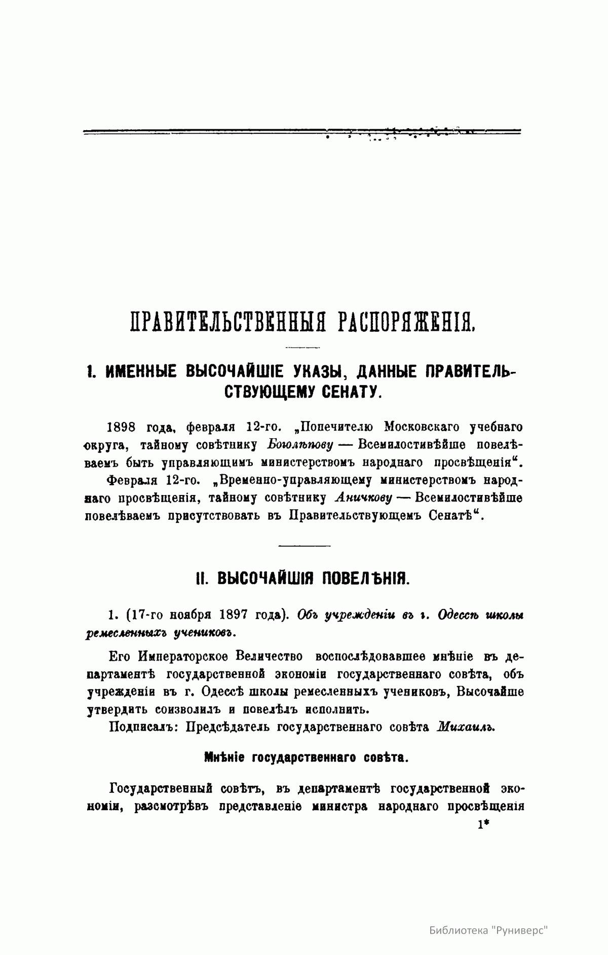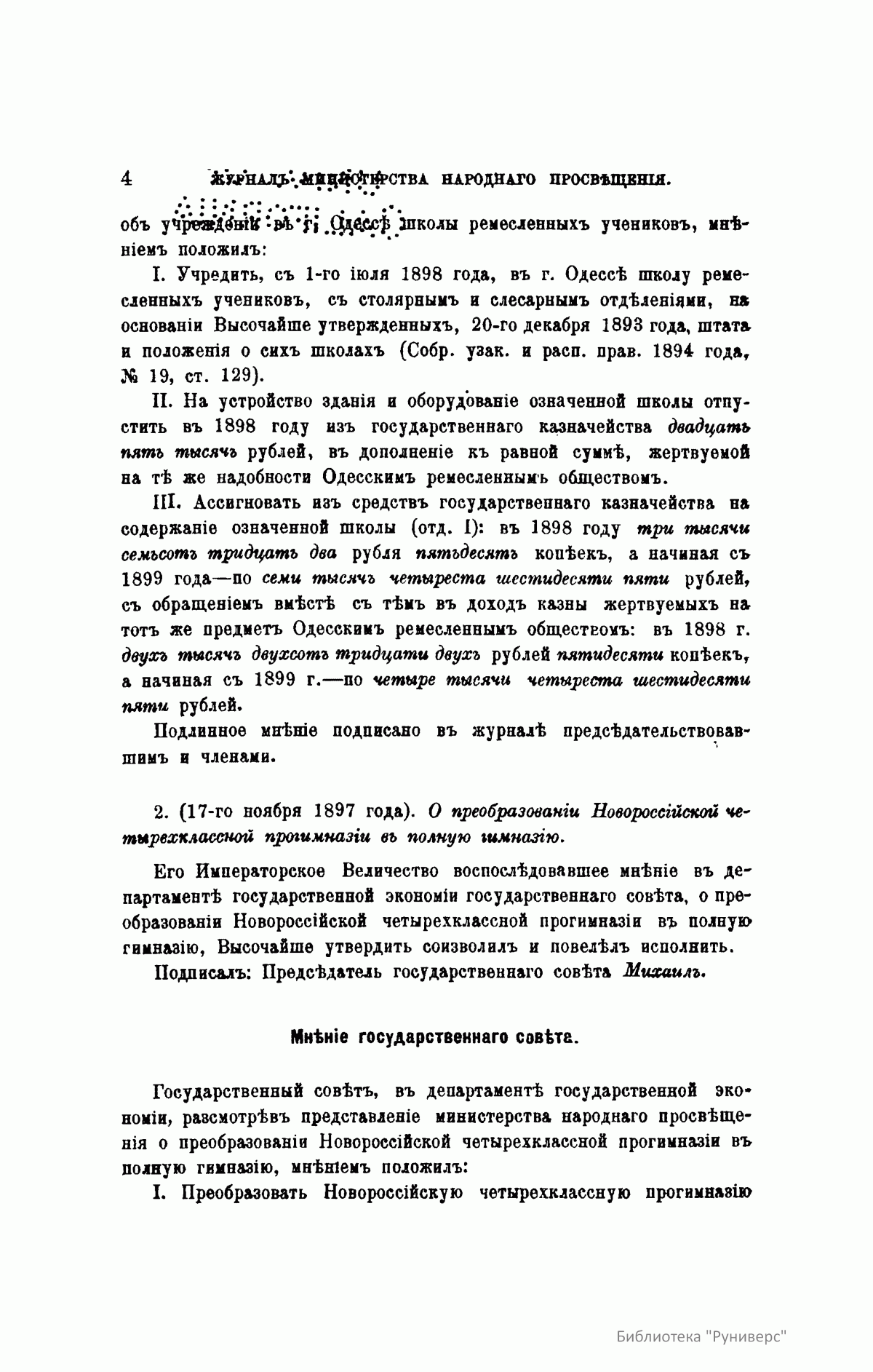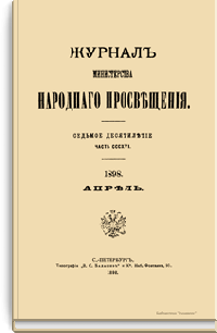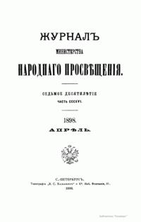 Журнал Министерства народного просвещения выходил с 1834-го по 1917 год. Официальный периодический журнал об успехах просвещения в России. Издатели журнала уверены в том, что «если для каждого человека необходим выход из грубой тьмы невежества и беспрерывное дальнейшее движение к свету, то для народов необходимо попечительное участие правительства в образовании. Только правительство имеет все средства знать и высоту успехов всемирного образования, и настоящие нужды Отечества».
