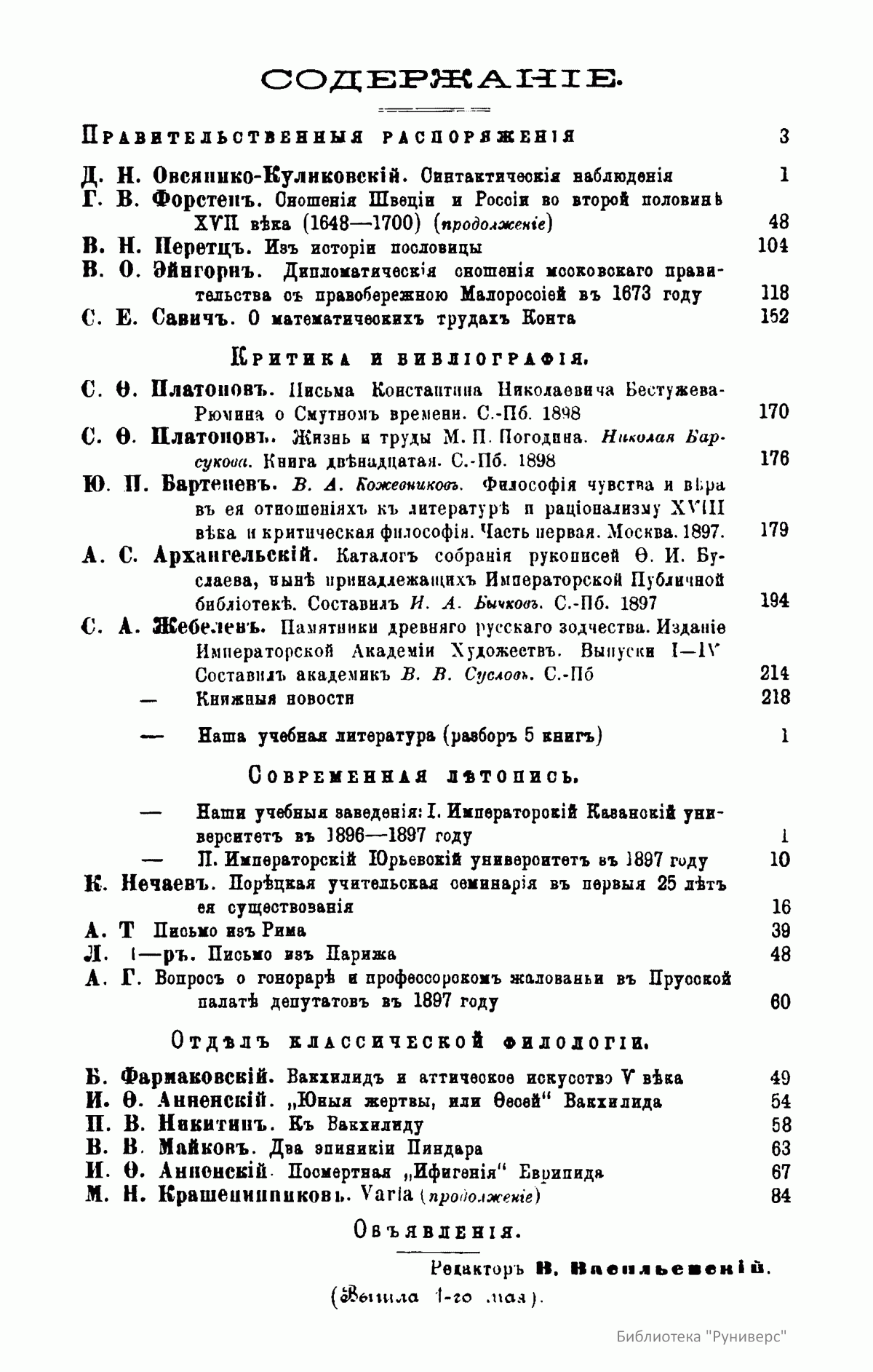 (помощник редактора, с 1899 года - редактор).